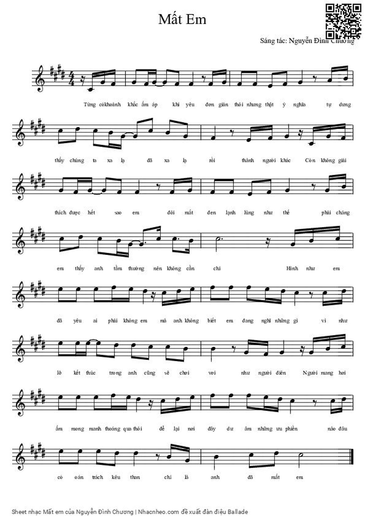 The Videos/audios Mất em by Nguyễn Đình Chương were embed from Youtube, Musescore or the other 3rd links. Videos are subject to 3rd's copyright control and may be removed by YouTube's copyright rules and 3rd's policies or maybe included advertisements. If you cannot access to these songs, this mean that have been removed.