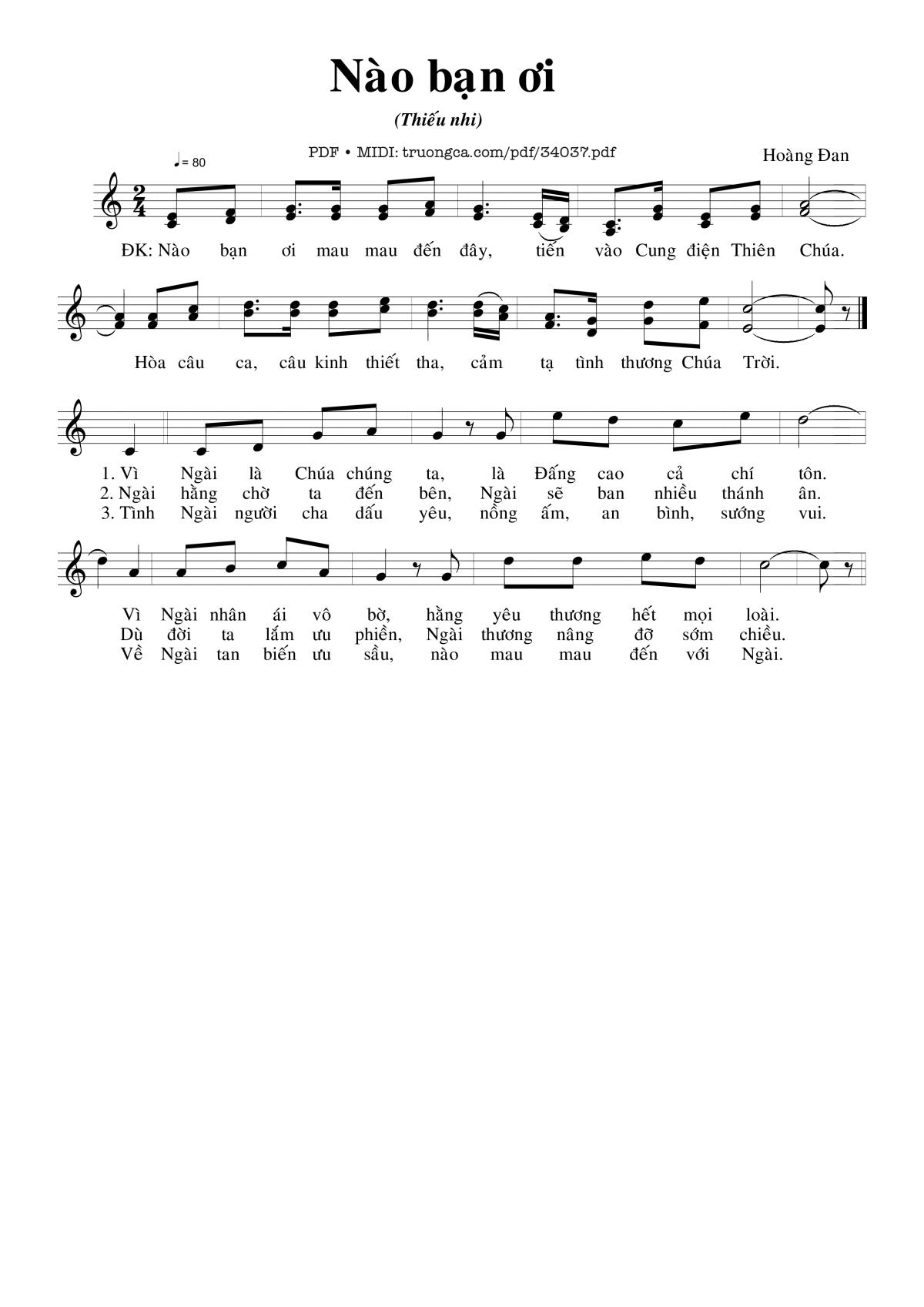 Điệp khúc: Nào bạn ơi mau mau đến đây, tiến vào Cung điện Thiên Chúa.