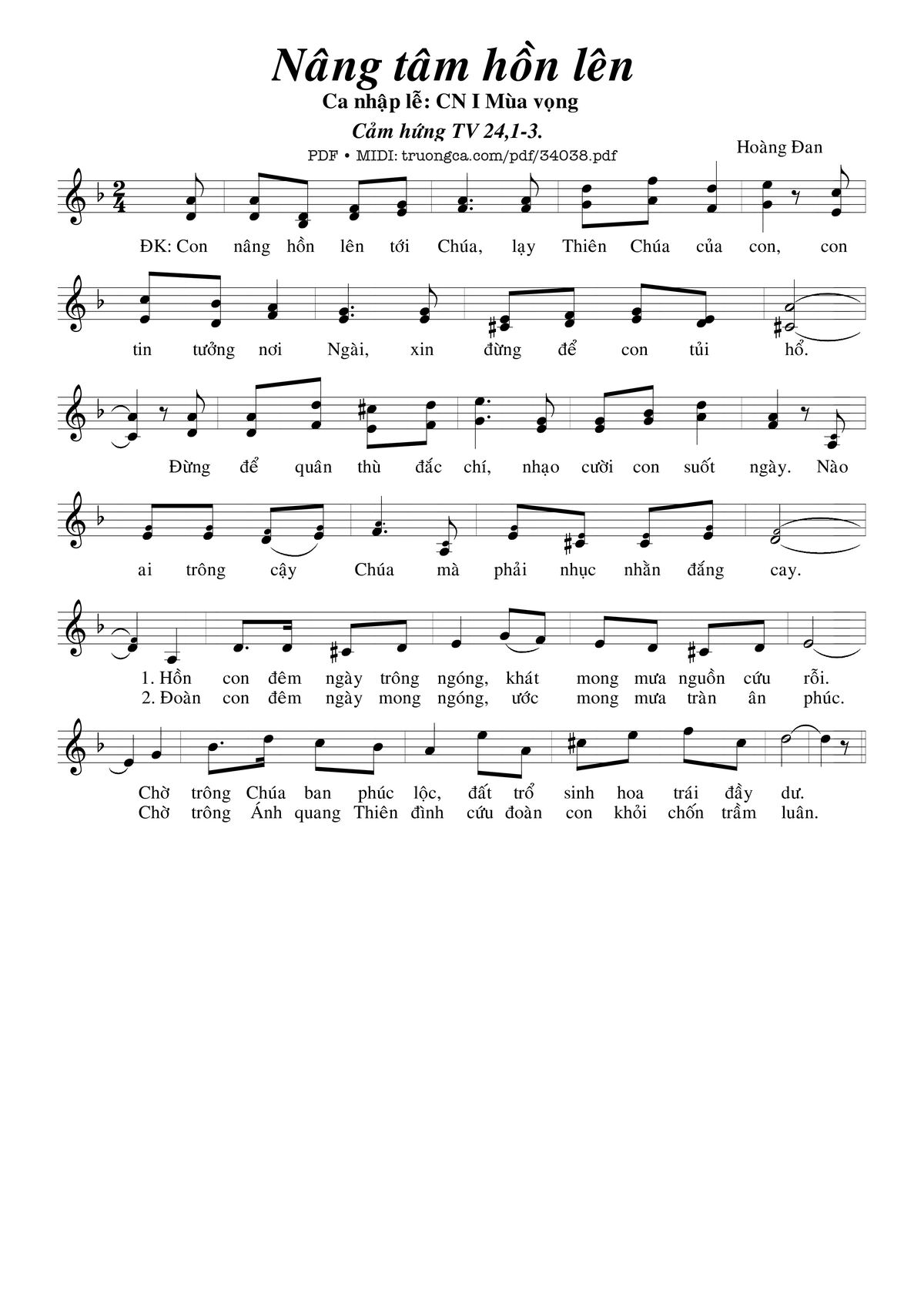 Điệp khúc : Con nâng hồn lên tới Chúa, lạy Thiên Chúa của con. Con tin tưởng nơi Ngài