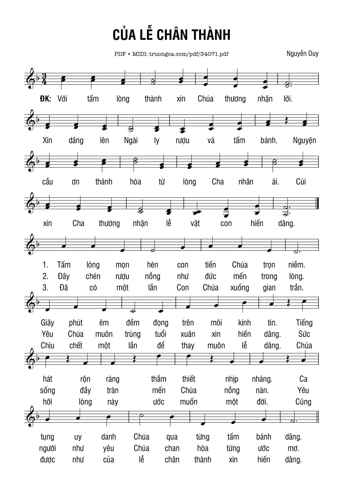 Nguyễn Duy Với tấm lòng thành xin Chúa thương nhận lời [PDF] [Sheet] [Lyrics] [Mp4/Midi]