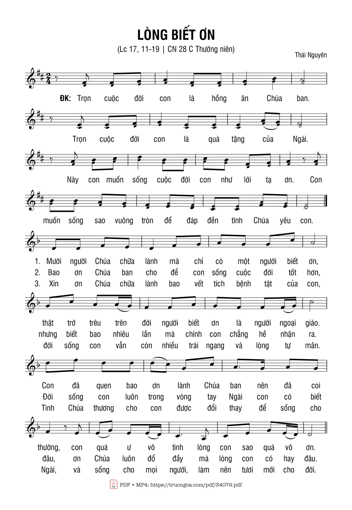 Thái Nguyên Trọn cuộc đời con là hồng ân Chúa ban [PDF] [Sheet] [Lyrics] [Mp4/Midi]