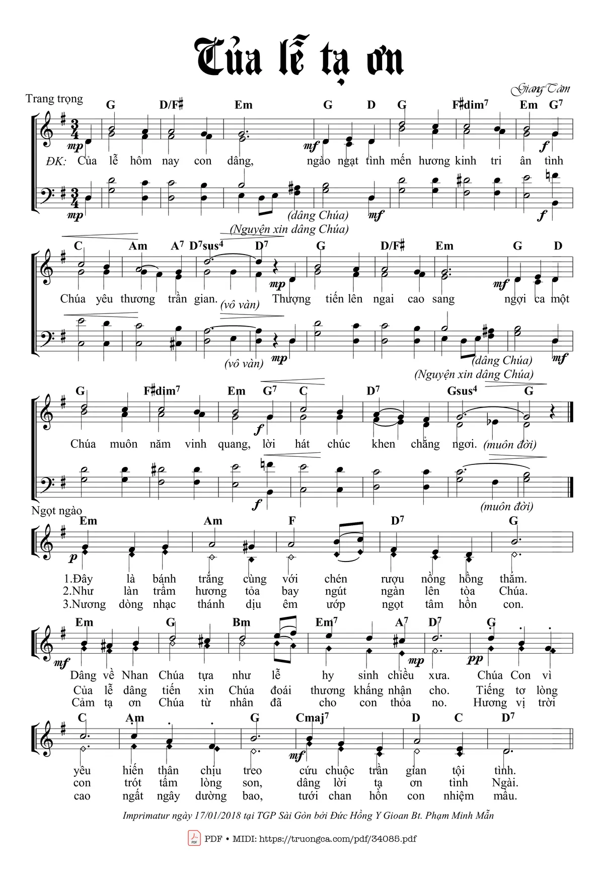 🌾 Imprimatur, Thông tin chuẩn nhận dùng trong phụng vụ Công Giáo: Dâng Lễ – Imprimatur – Tgp. Sài Gòn: 17.01.2018
