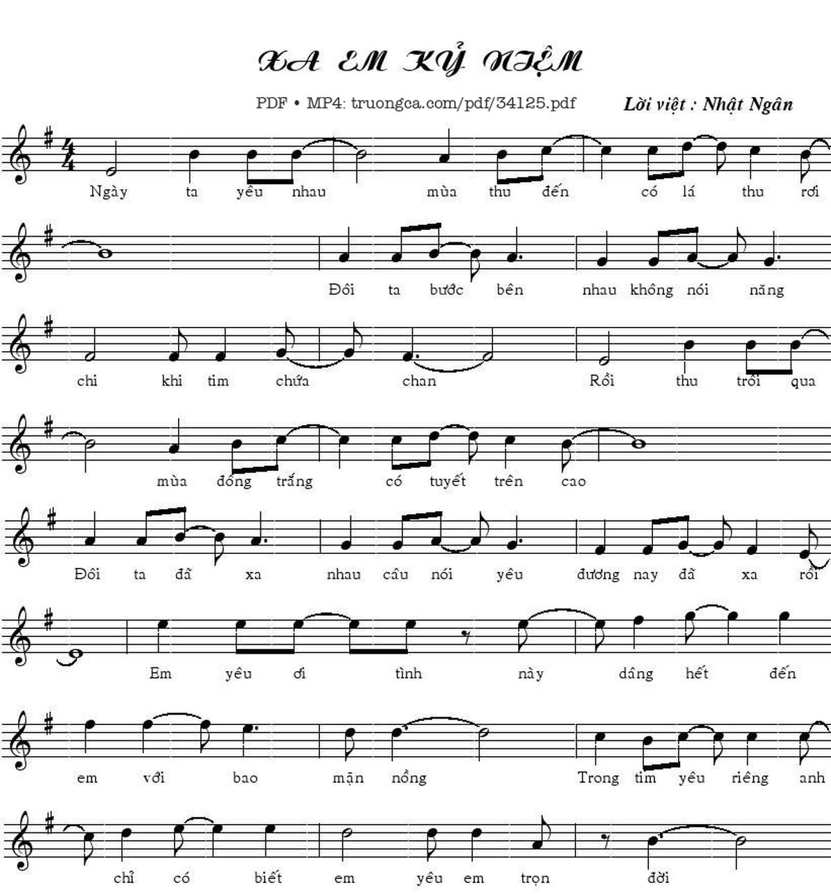 Sheet music Xa Em Kỷ Niệm by Nhật Ngân and PDF file was posted here to support you to practice singing perfectly. Sheets with notes and chords are for reference only, for non-commercial purposes only, not involved with earning money by buying and selling. Copyright is belong to song writer/author and copyright owner. Truongca.com do not own any copyrighted content. You can download the high-quality PDF files which contain staffs by PDF link above.