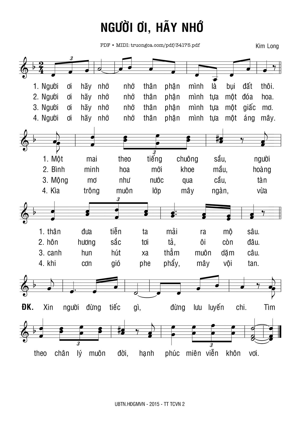 Kim Long Người ơi hãy nhớ nhớ thân phận mình là bụi đất thôi [PDF] [Sheet] [Lyrics] [Mp4/Midi]