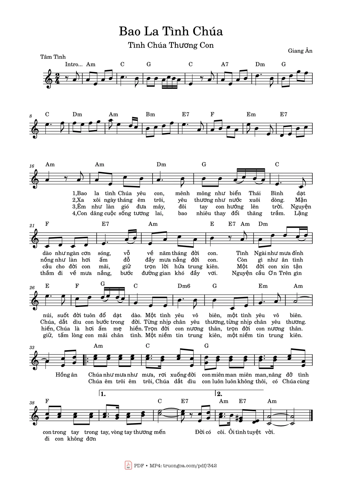 Giang Ân Bao la tình Chúa yêu con [PDF] [Sheet] [Lyrics] [Mp4/Midi]