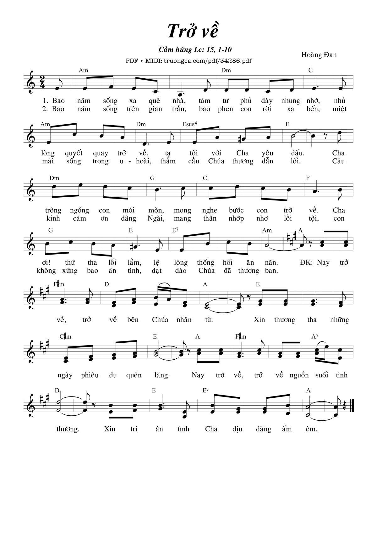 Sheet PDF with the same name Trở Về: