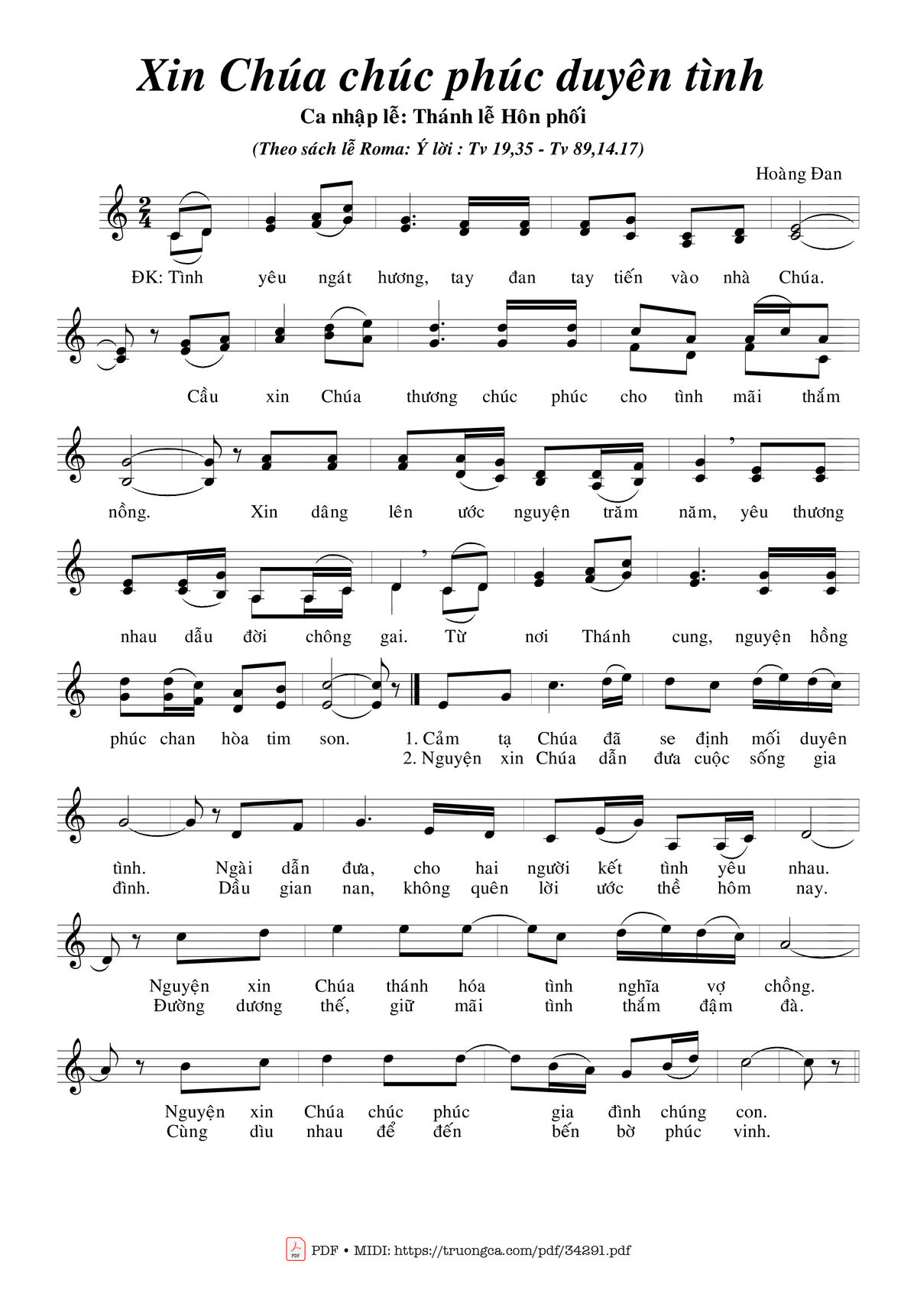 2. Nguyện xin Chúa dẫn đưa cuộc sống gia đình. Dầu gian nan, không quên lời ước thề hôm nay. Đường dương thế, giữ mãi tình thắm đậm đà. Cùng dìu nhau để đến bến bờ phúc vinh.