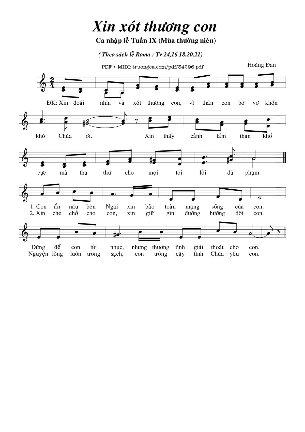 Điệp khúc: Xin đoái nhìn và xót thương con, vì thân con bơ vơ khốn khó, Chúa ơi.