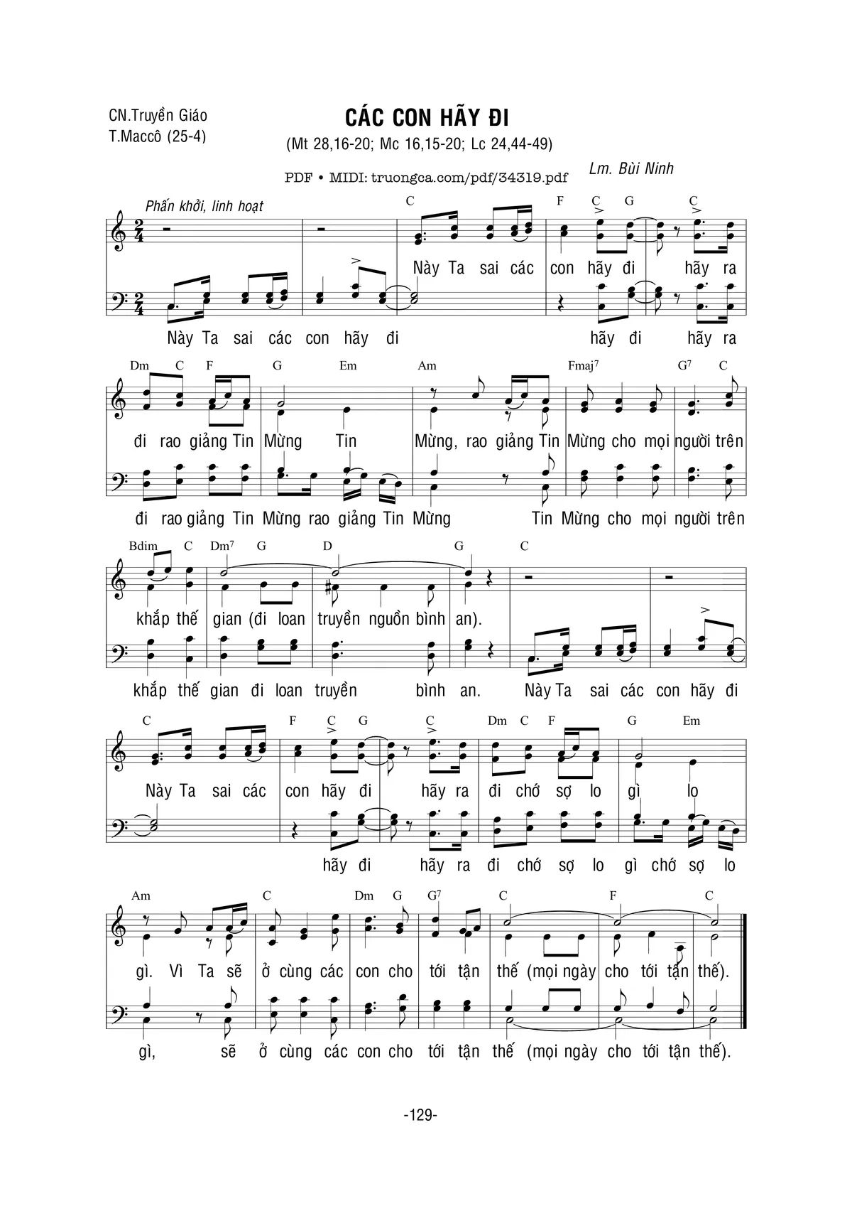 Bùi Ninh Này Ta sai các con hãy đi hãy ra đi rao giảng Tin Mừng [PDF] [Sheet] [Lyrics] [Mp4/Midi]