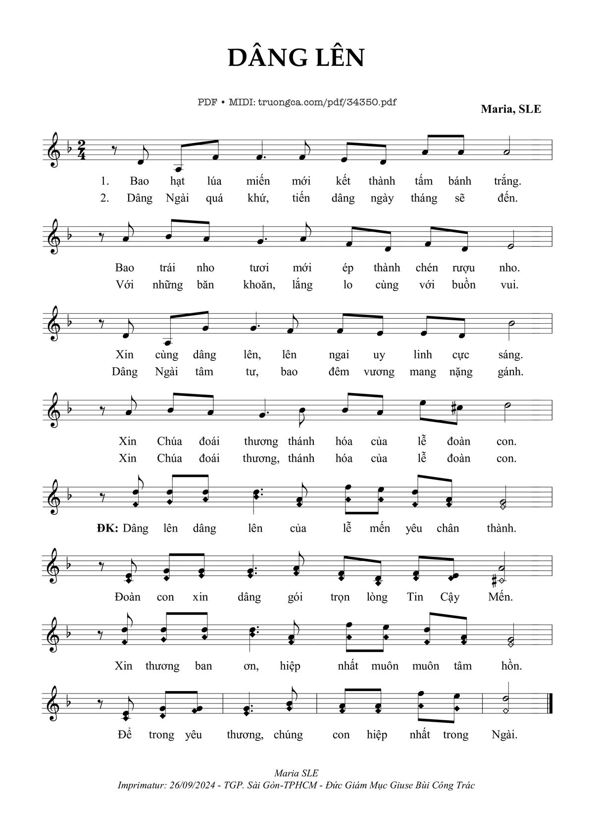 Sheet PDF with the same name Dâng Lên: