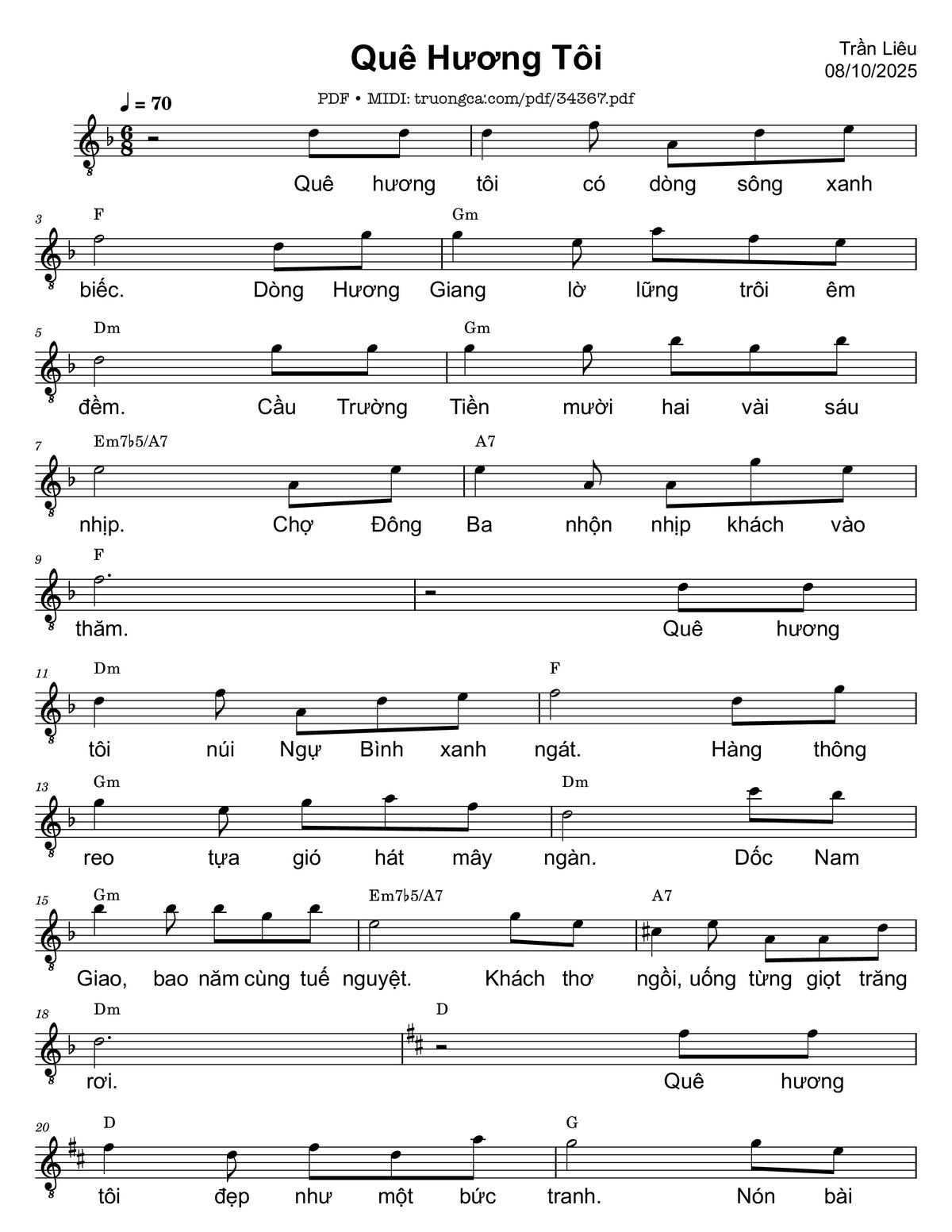 Trần Liêu Quê hương tôi có dòng sông xanh biếc Dòng Hương Giang lờ lững trôi êm đềm [PDF] [Sheet] [Lyrics] [Mp4/Midi]