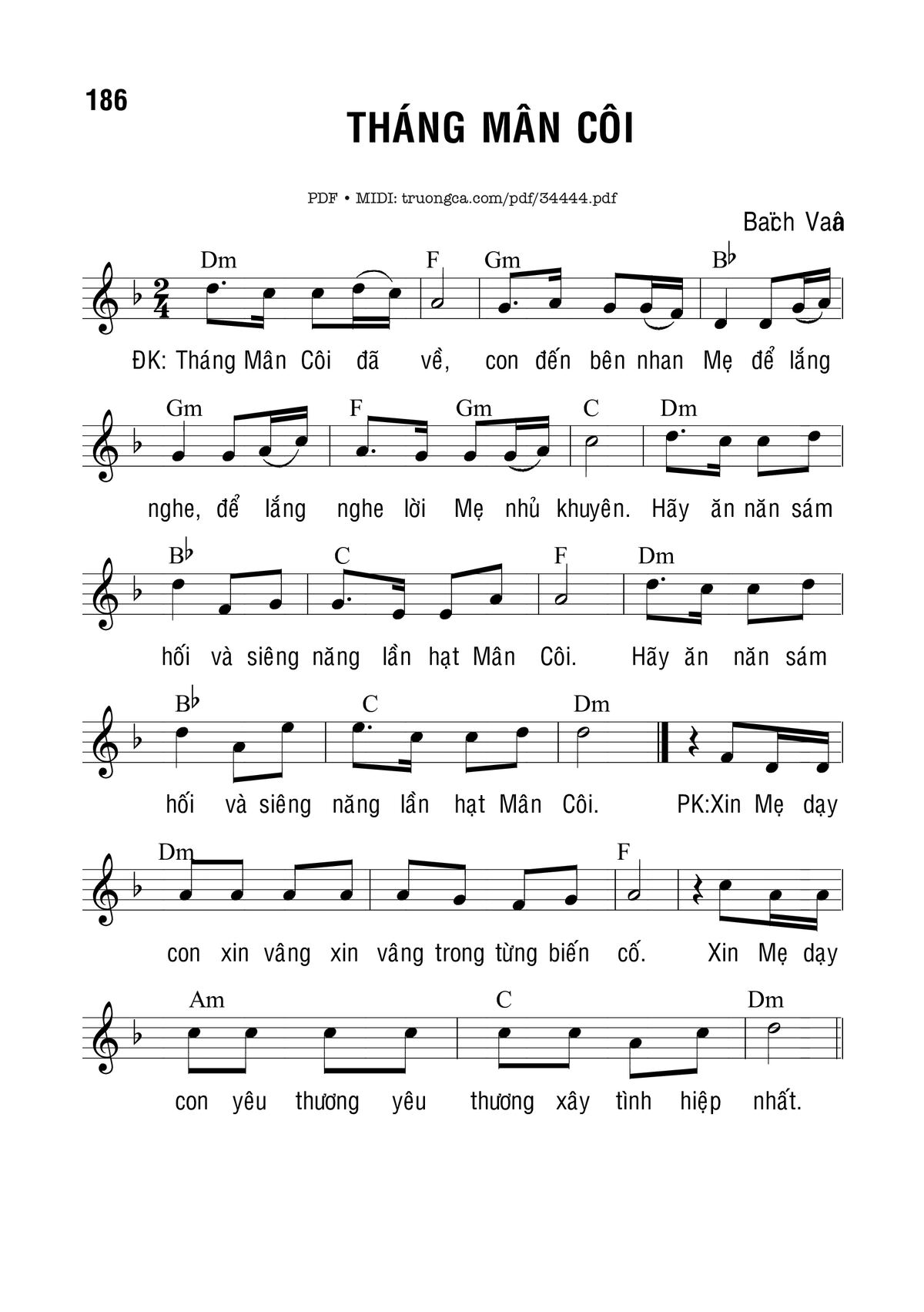 Transposition is the process of moving a song's melody and chords up or down in pitch by a constant interval. The direction of the transposition tool is indicated by a plus (+) sign for up and a minus (-) sign for down. Hover mouse over chords signs to see the chords chart of Tháng Mân Côi song.