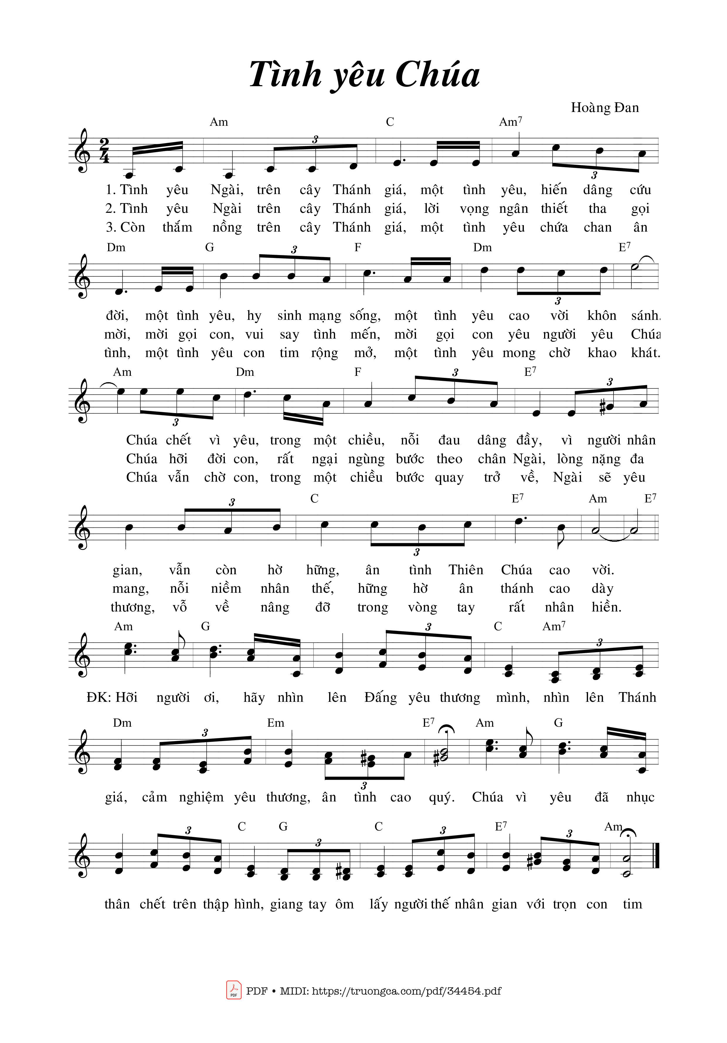 Transposition is the process of moving a song's melody and chords up or down in pitch by a constant interval. The direction of the transposition tool is indicated by a plus (+) sign for up and a minus (-) sign for down. Hover mouse over chords signs to see the chords chart of Tình Yêu Chúa song.
