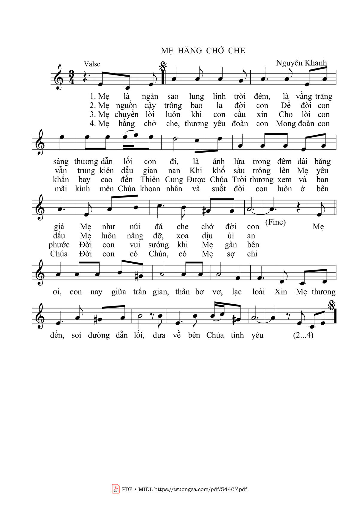 Nguyên Khanh Mẹ là ngàn sao lung linh trời đêm Là vầng trăng sáng thương dẫn lối con đi [PDF] [Sheet] [Lyrics] [Mp4/Midi]