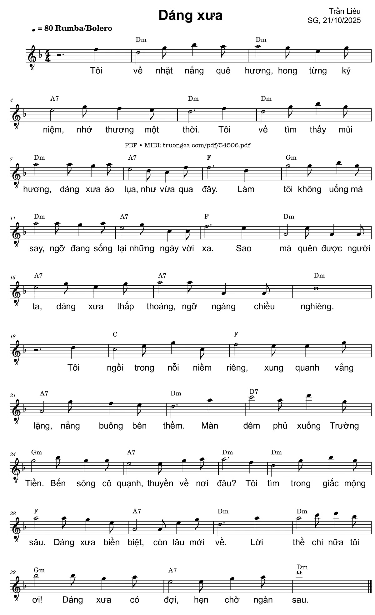 Sheet PDF with the same name Dáng xưa: