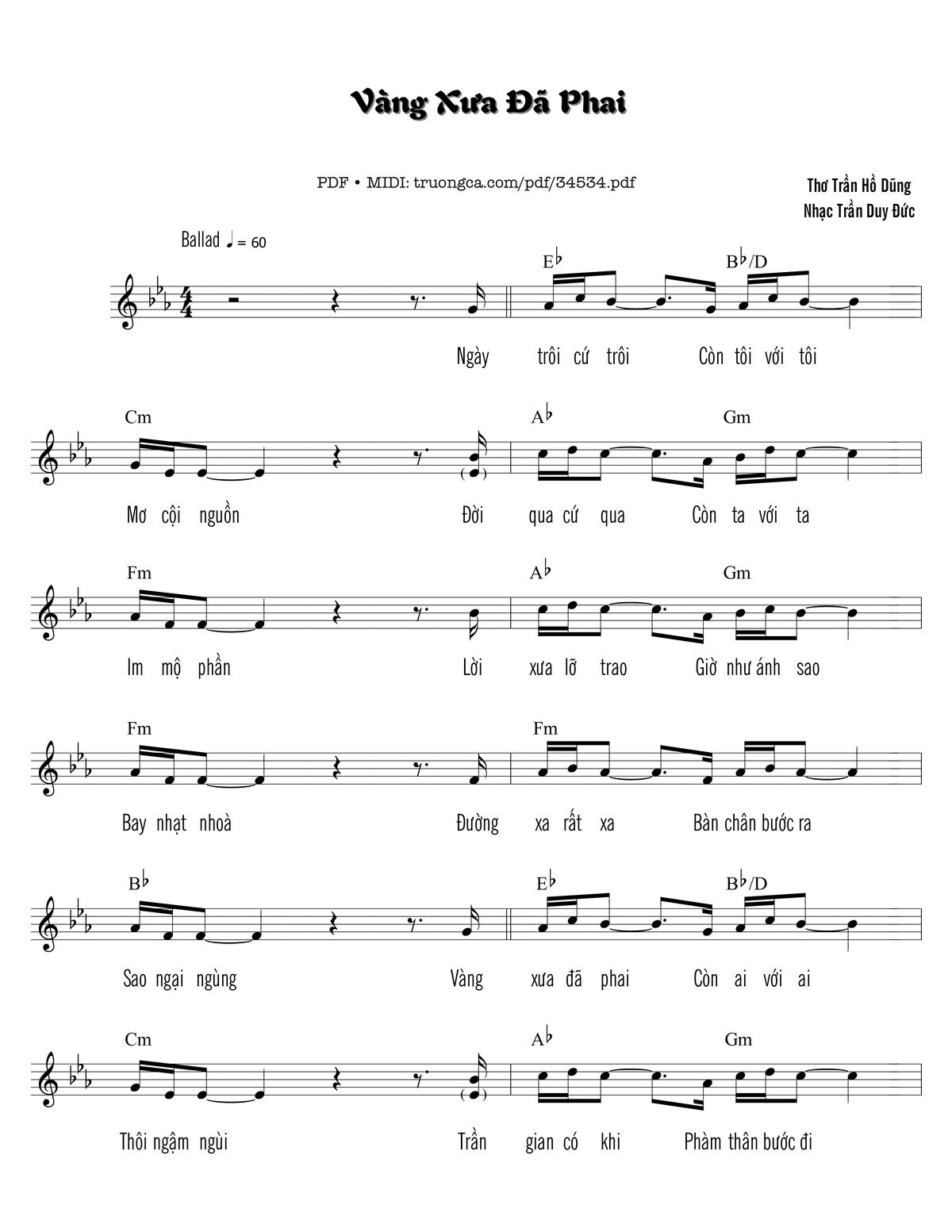 The Videos/audios Vàng xưa đã phai by Trần Duy Đức were embed from Youtube, Musescore or the other 3rd links. Videos are subject to 3rd's copyright control and may be removed by YouTube's copyright rules and 3rd's policies or maybe included advertisements. If you cannot access to these songs, this mean that have been removed.