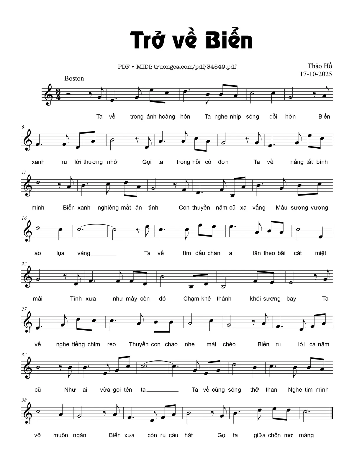 Thảo Hồ Ta về trong ánh hoàng hôn Ta nghe nhịp sóng dỗi hờn [PDF] [Sheet] [Lyrics] [Mp4/Midi]