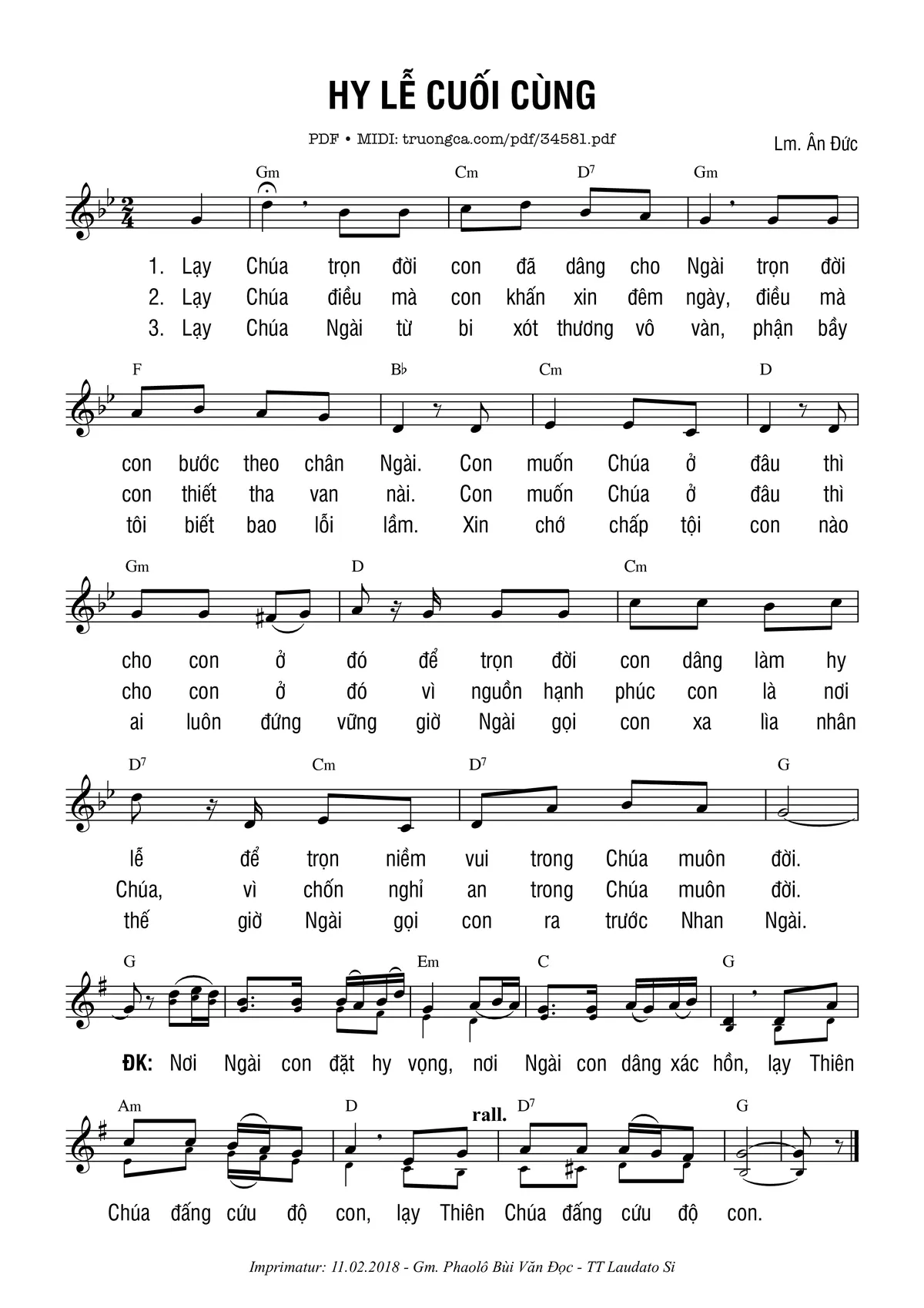 Sheet PDF with the same name Hy Lễ Cuối Cùng:
