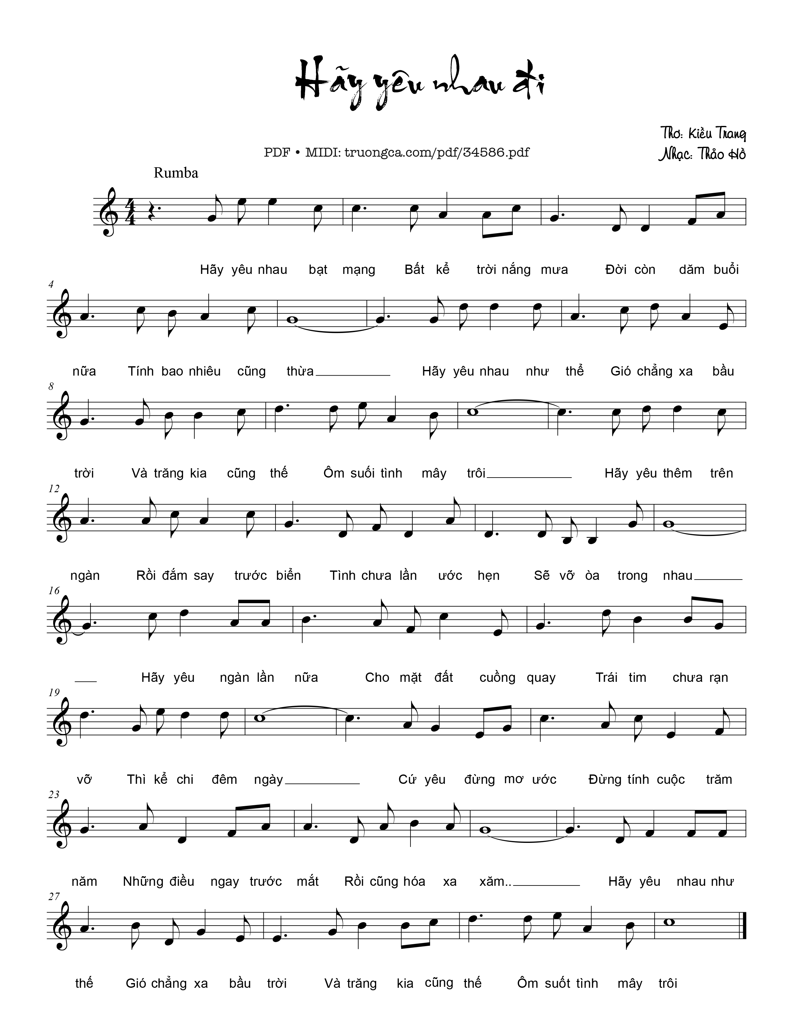 Thảo Hồ Hãy yêu nhau bạt mạng Bất kể trời nắng mưa [PDF] [Sheet] [Lyrics] [Mp4/Midi]