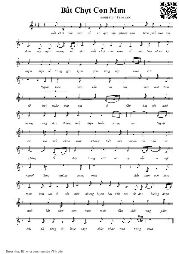 The first sentence: Bất chợt cơn mưa về Về qua căn phòng nhỏ