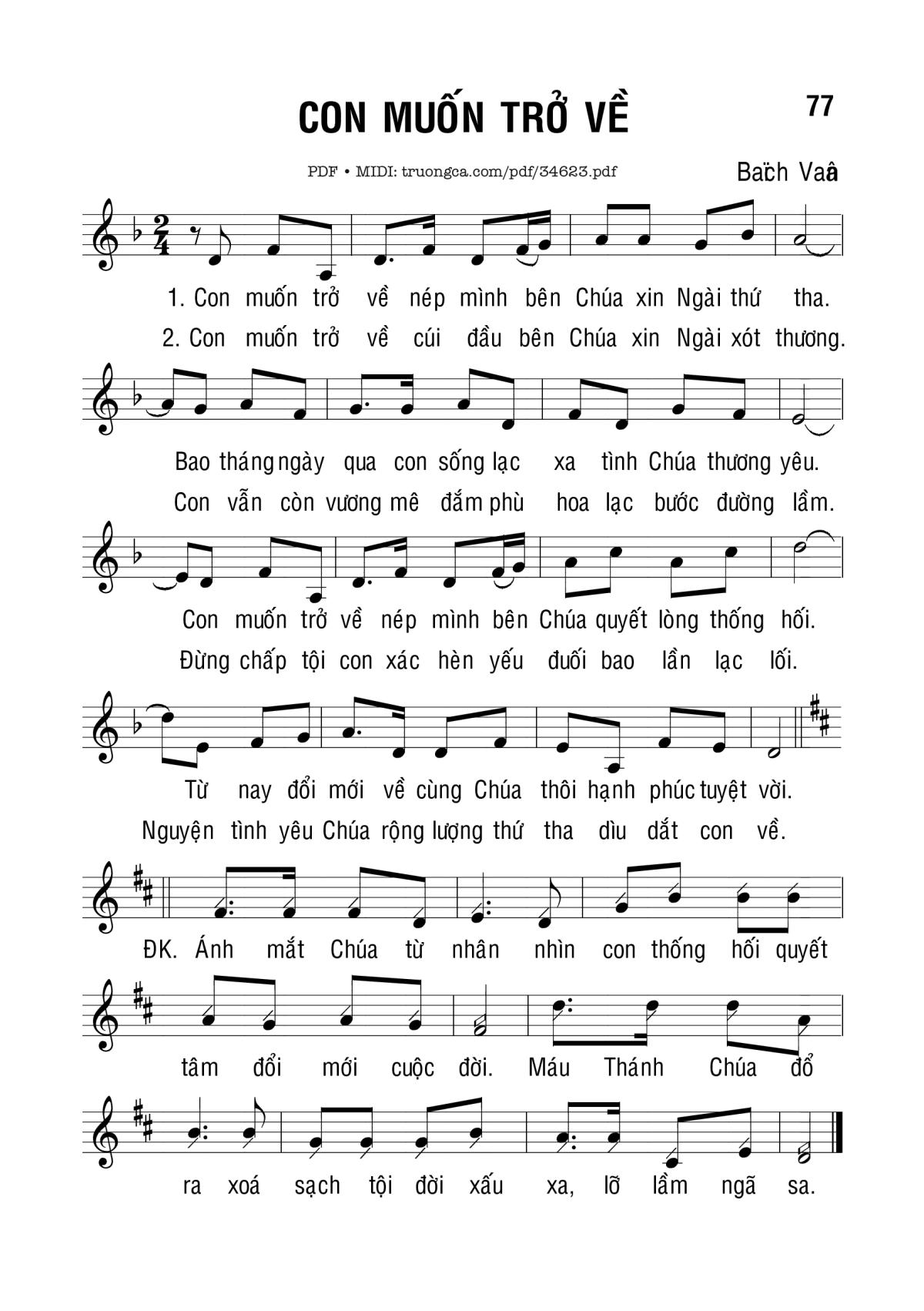 1. Con muốn trở về nép mình bên Chúa xin Ngài thứ tha. Bao tháng ngày qua con sống lạc xa tình Chúa yêu thương. Con muốn trở về nép mình bên Chúa quyết lòng thống hối. Từ nay đổi mới về cùng Chúa thôi hạnh phúc tuyệt vời.
