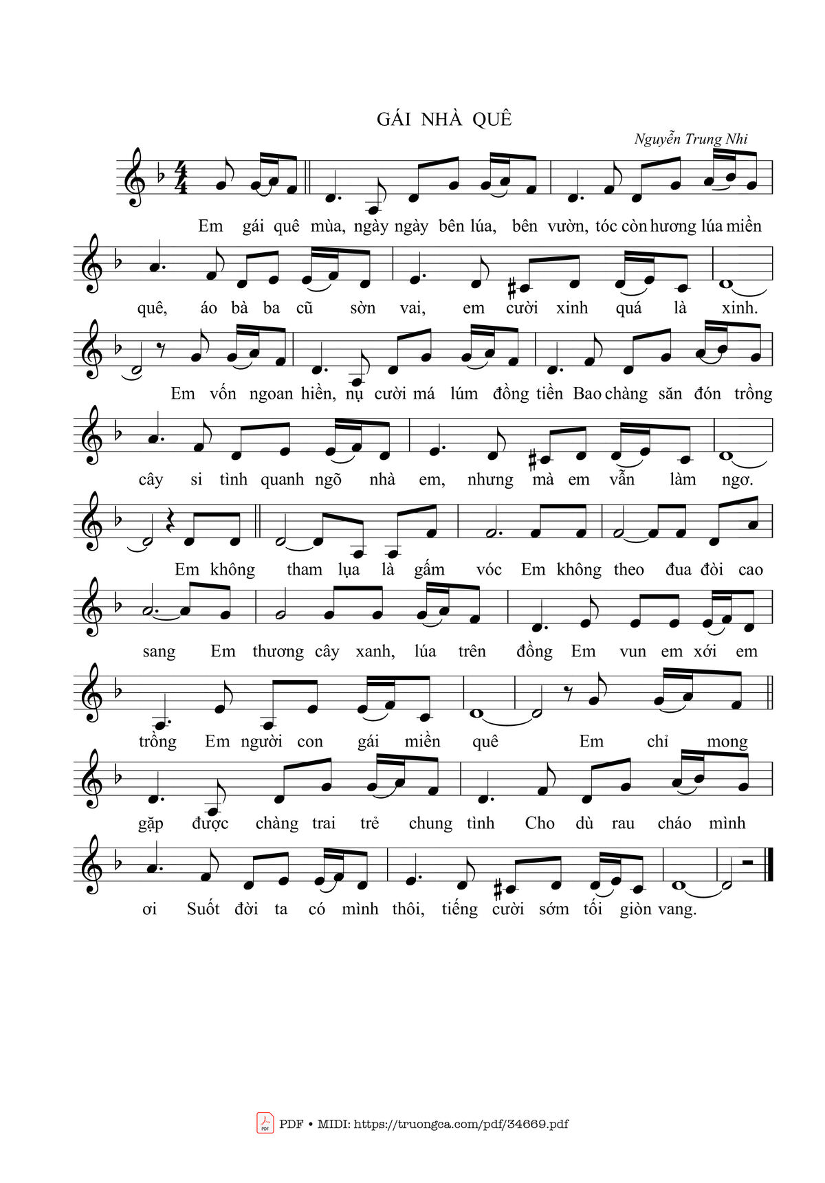 Nguyễn Trung Nhi Em gái quê mùa ngày ngày bên lúa bên vườn [PDF] [Sheet] [Lyrics] [Mp4/Midi]