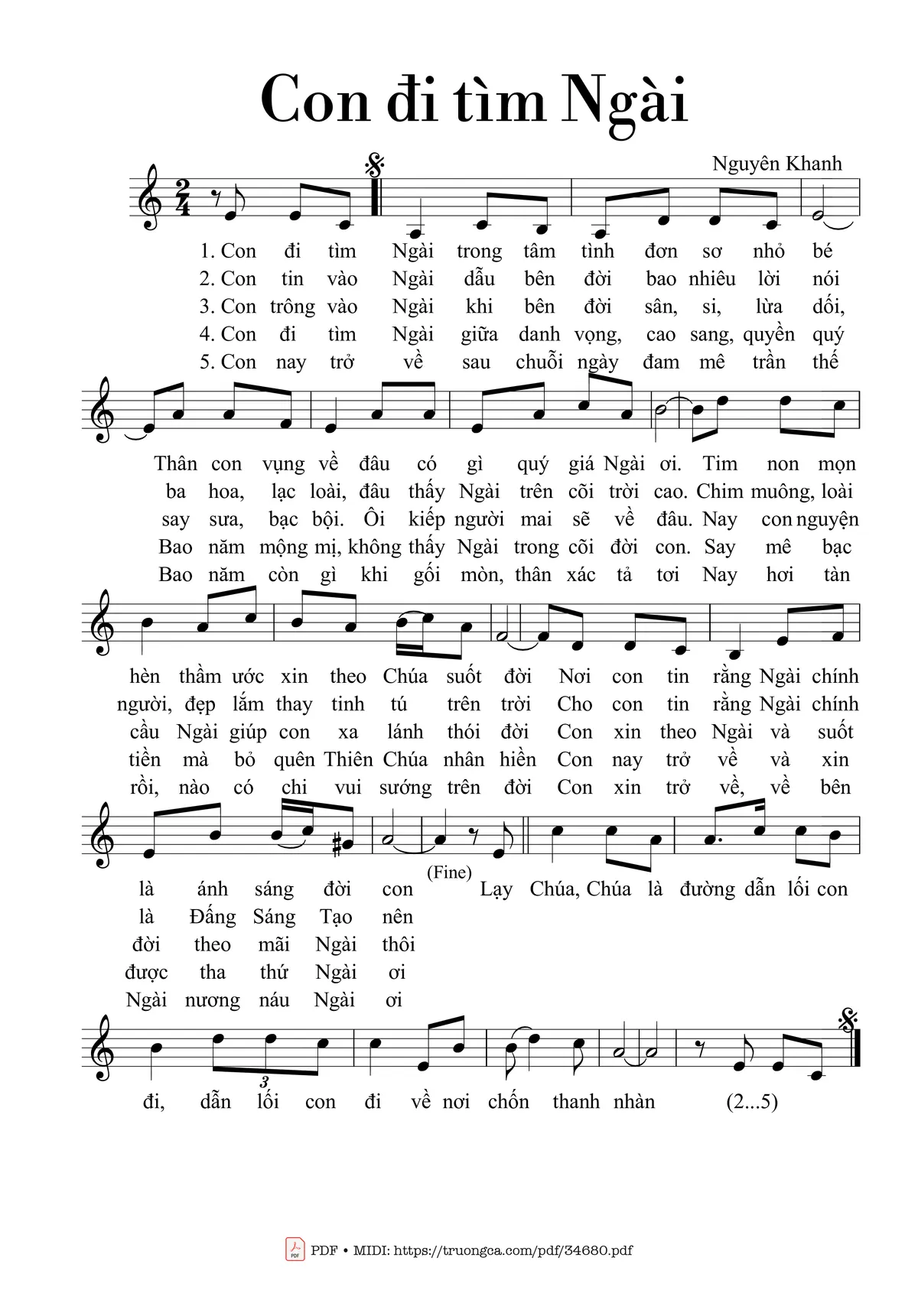 Nguyên Khanh Con đi tìm Ngài trong tâm tình đơn sơ nhỏ bé [PDF] [Sheet] [Lyrics] [Mp4/Midi]