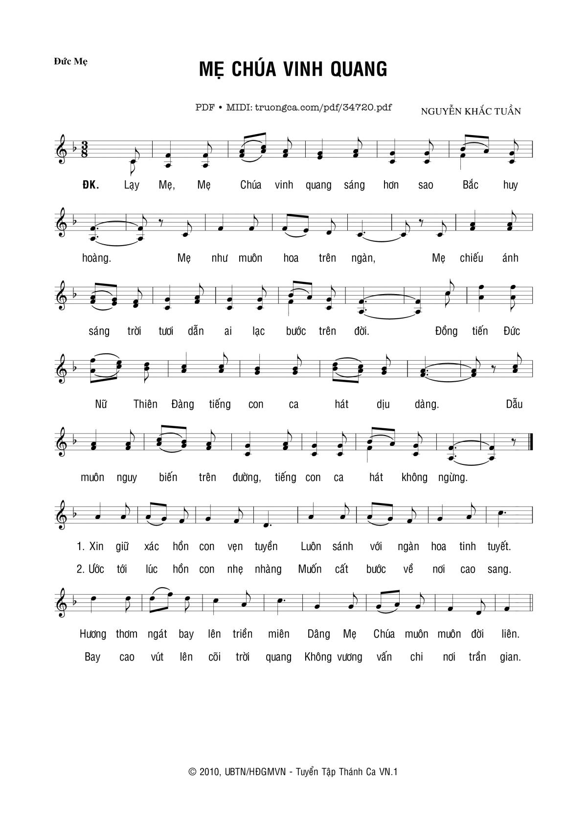 Nguyễn Khắc Tuần Lạy Mẹ Mẹ Chúa vinh quang sáng hơn sao Bắc huy hoàng [PDF] [Sheet] [Lyrics] [Mp4/Midi]