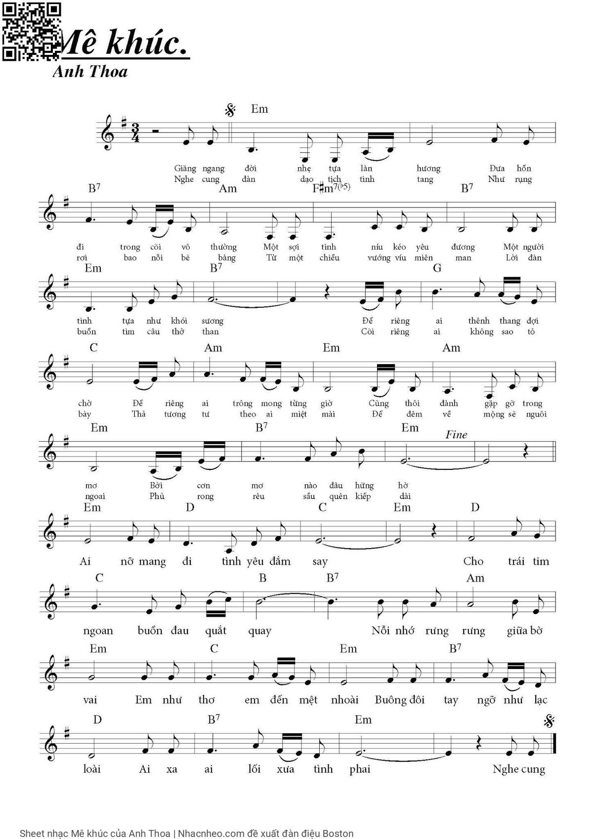 The Videos/audios Mê khúc by Anh Thoa were embed from Youtube, Musescore or the other 3rd links. Videos are subject to 3rd's copyright control and may be removed by YouTube's copyright rules and 3rd's policies or maybe included advertisements. If you cannot access to these songs, this mean that have been removed.