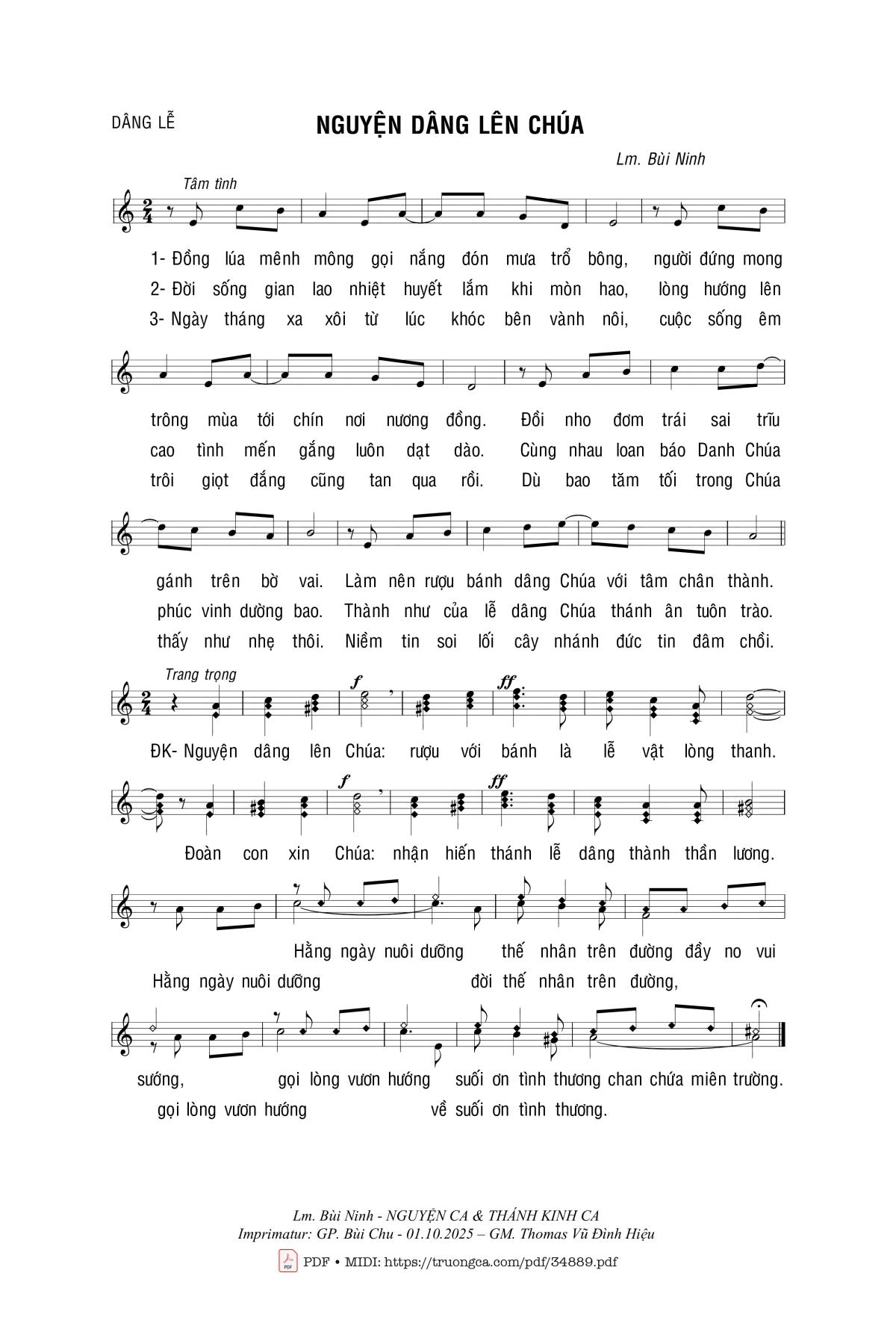 🌾 Imprimatur, Thông tin chuẩn nhận dùng trong phụng vụ Công Giáo: Dâng Lễ – Imprimatur: GP. Bùi Chu – 01.10.2025 – GM. Thomas Vũ Đình Hiệu – Nguyện Ca & Thánh Kinh Ca