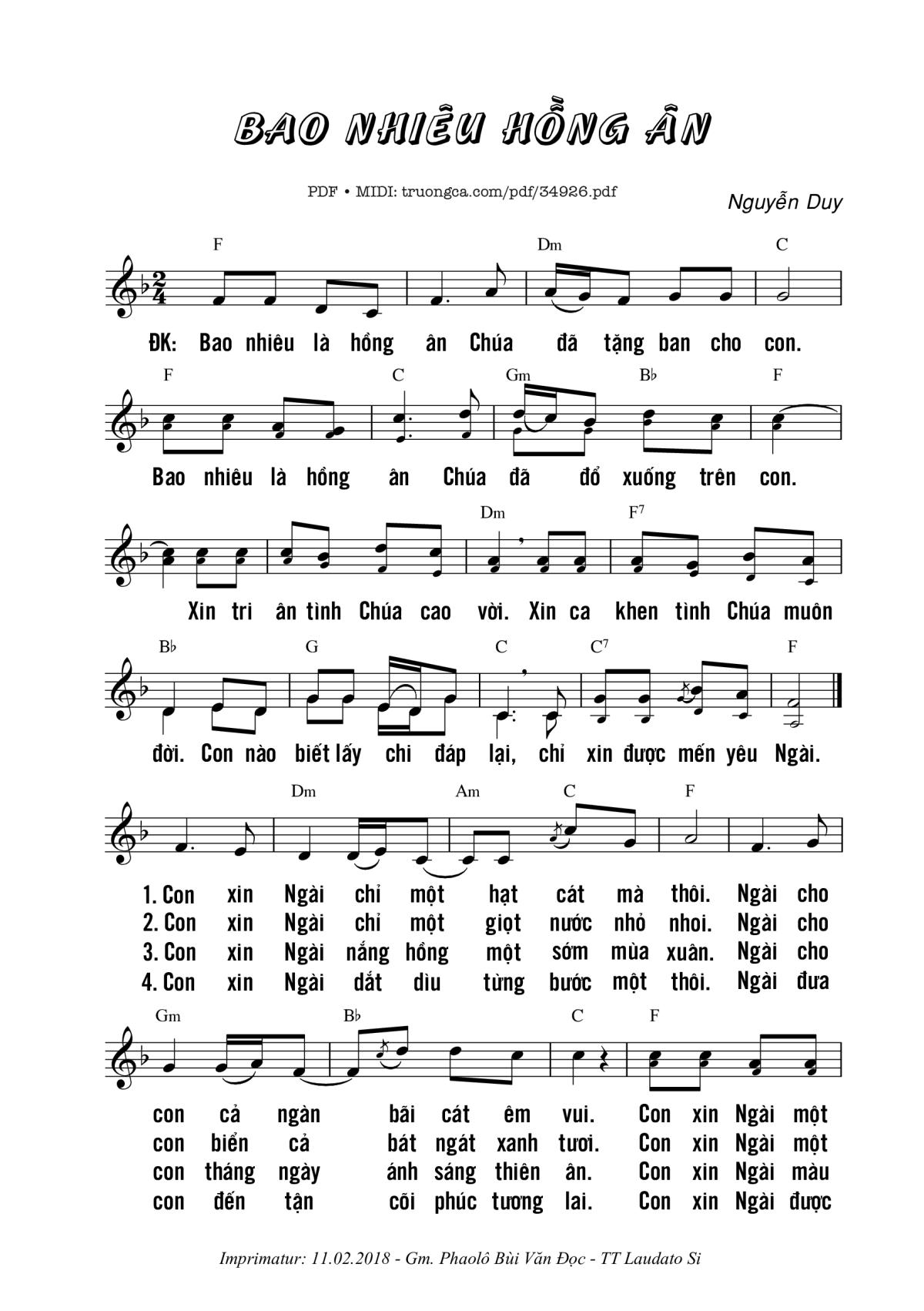 Nguyễn Duy Ca Nguyện Hiệp Lễ Bao nhiêu là hồng ân Chúa đã tặng ban cho con [PDF] [Sheet] [Lyrics] [Mp4/Midi]