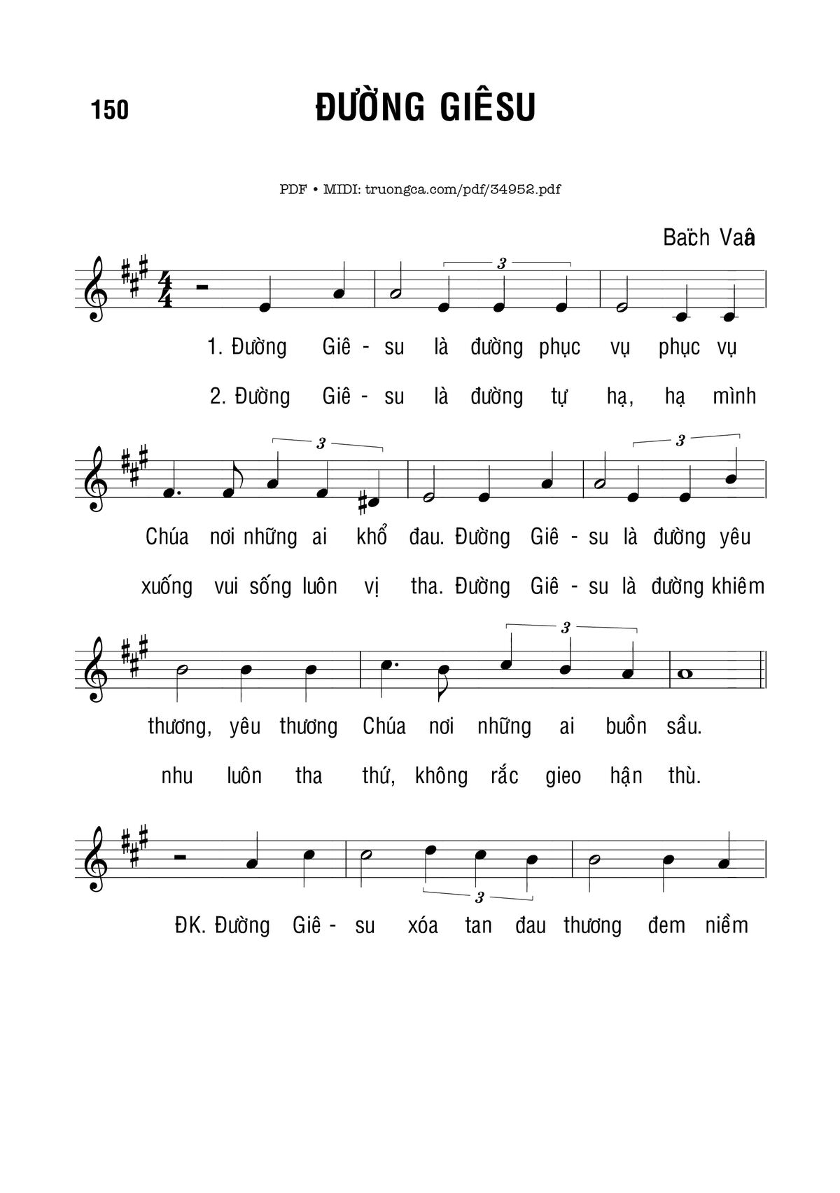 Điệp khúc: Đường Giê-su xoá tan đau thương đem niềm vui đến với ai chán chường. Đường Giê-su kết muôn con tim cùng chung tay xây dựng bác ái. Đường Giê-su thắp lên tin yêu, thêm niềm tin vững bước ai thất vọng. Đường Giê-su bước đi hiên ngang làm rạng danh Tin Mừng khắp nơi.