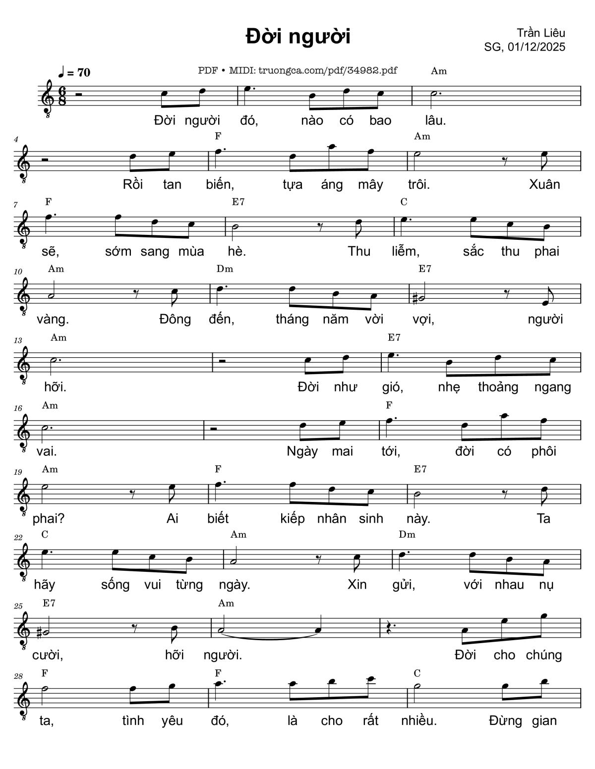 Trần Liêu Đời người đó nào có bao lâu Rồi tan biến [PDF] [Sheet] [Lyrics] [Mp4/Midi]