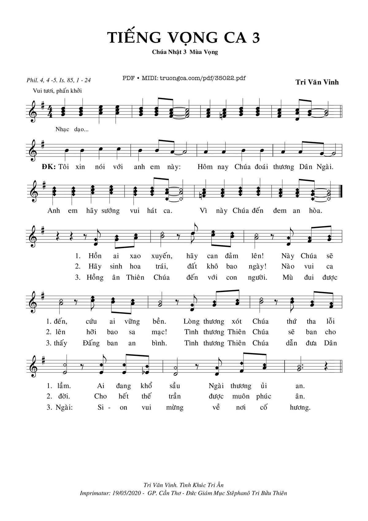 Tri Văn Vinh Tôi xin nói với anh em này Hôm nay Chúa đoái thương Dân Ngài [PDF] [Sheet] [Lyrics] [Mp4/Midi]