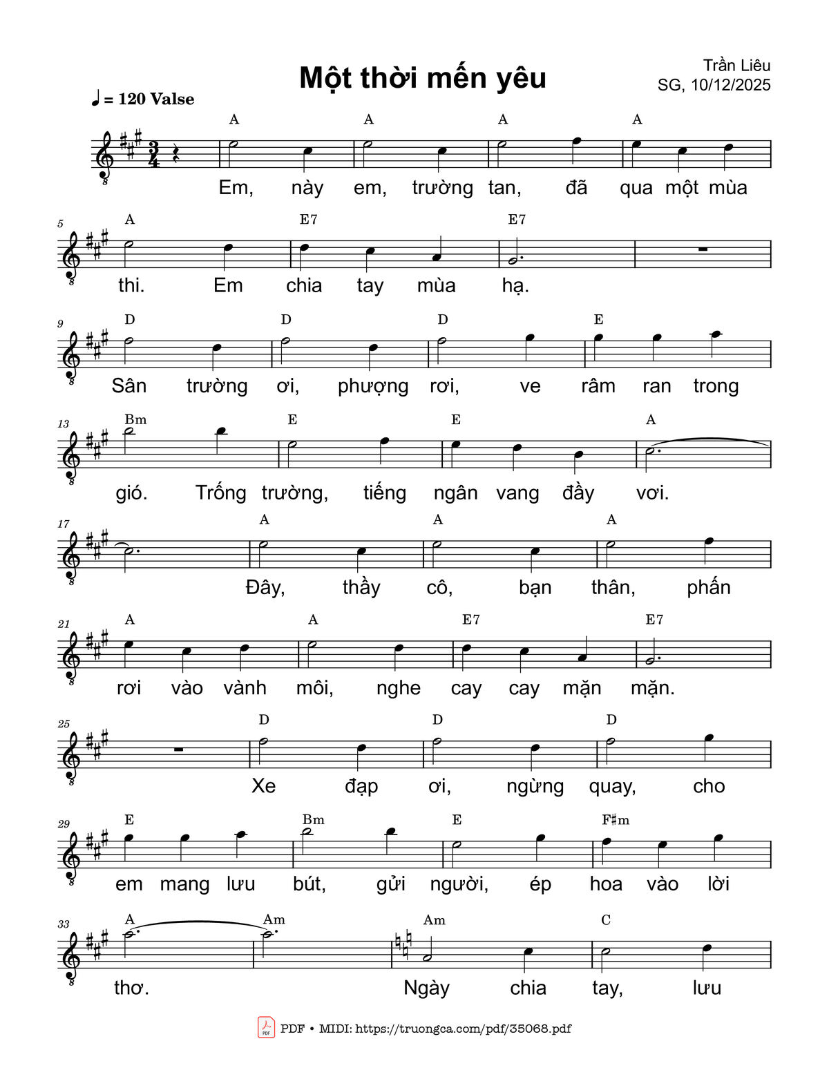 Trần Liêu Em này em trường tan Đã qua một mùa thi Em chia tay mùa hạ [PDF] [Sheet] [Lyrics] [Mp4/Midi]