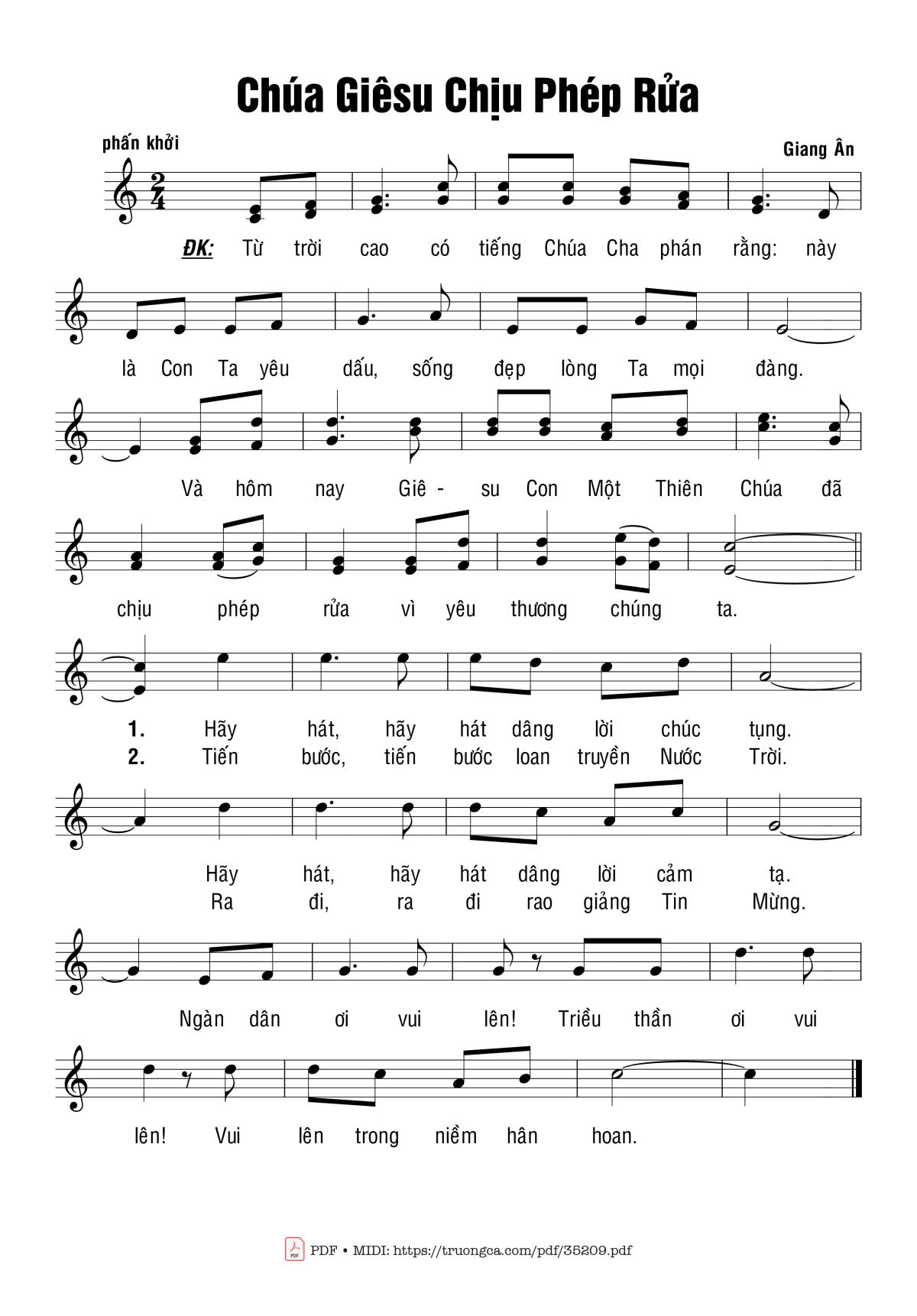 Sheet PDF with the same name Chúa Giêsu Chịu Phép Rửa: