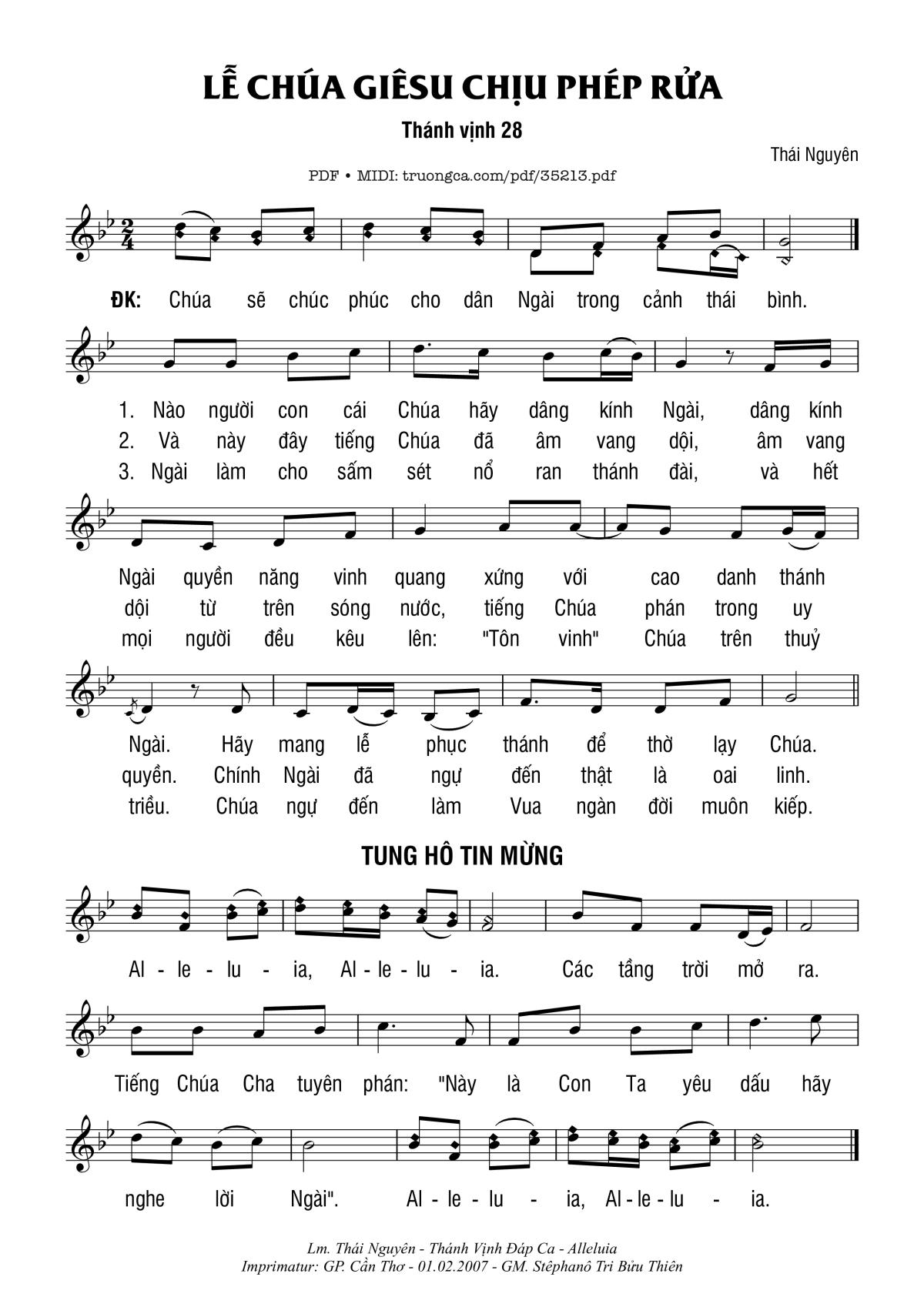 🌾 Imprimatur, Thông tin chuẩn nhận dùng trong phụng vụ Công Giáo: Thánh Vịnh – Đáp Ca. Imprimatur: GP. Cần Thơ – 01.02.2007 – GM. Stêphanô Tri Bửu Thiên
