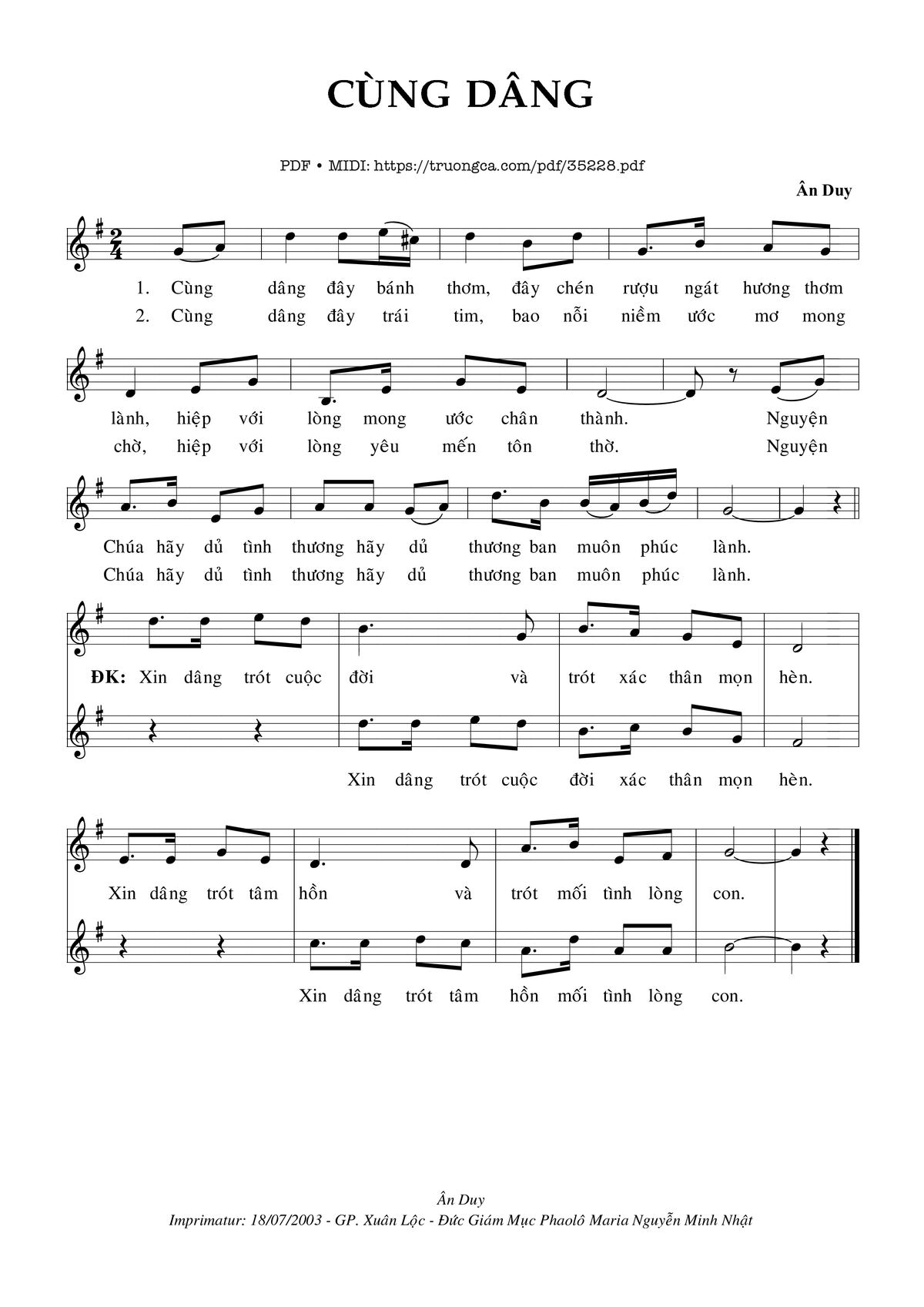 Sheet PDF with the same name Cùng Dâng: