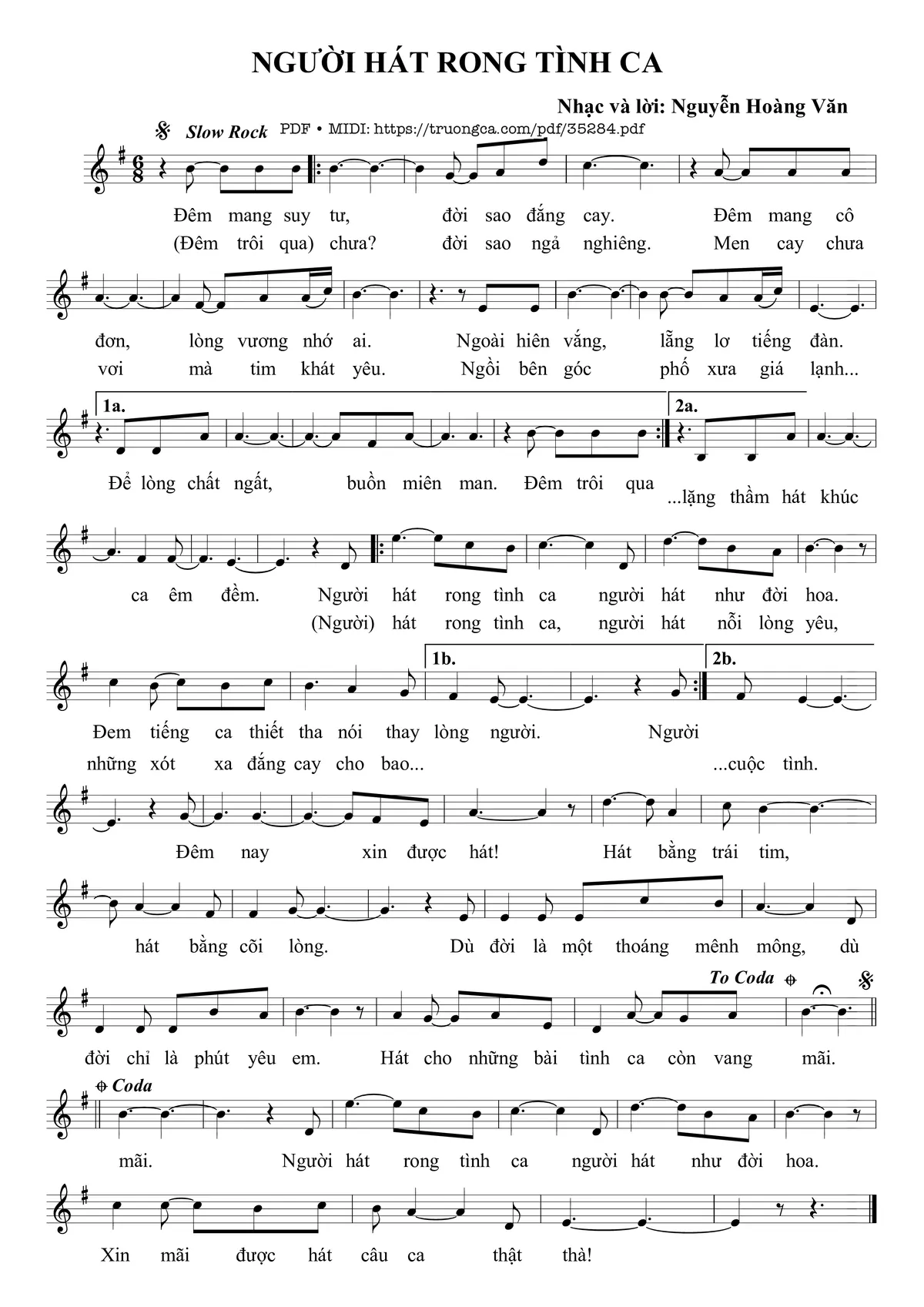 Nguyễn Hoàng Văn Đêm mang suy tư đời sao đắng cay Đêm mang cô đơn [PDF] [Sheet] [Lyrics] [Mp4/Midi]