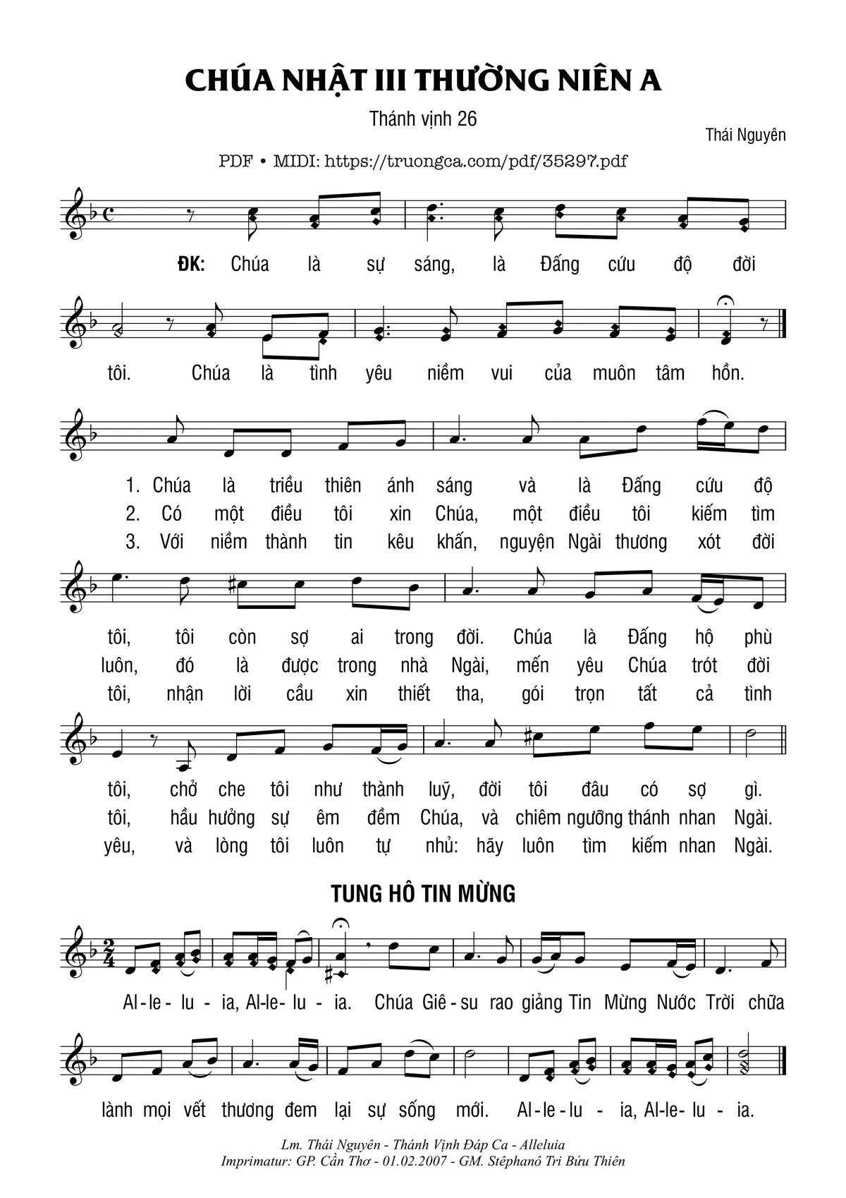Thái Nguyên Chúa là sự sáng là Đấng cứu độ đời tôi [PDF] [Sheet] [Lyrics] [Mp4/Midi]