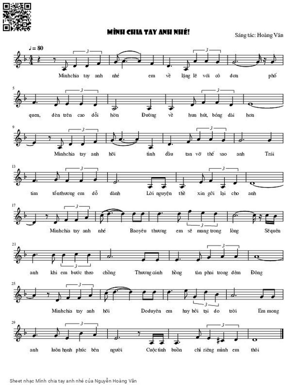 Nguyễn Hoàng Văn Mình chia tay anh nhé Em về lặng lẽ với cô đơn [PDF] [Sheet] [Lyrics] [Mp4/Midi]