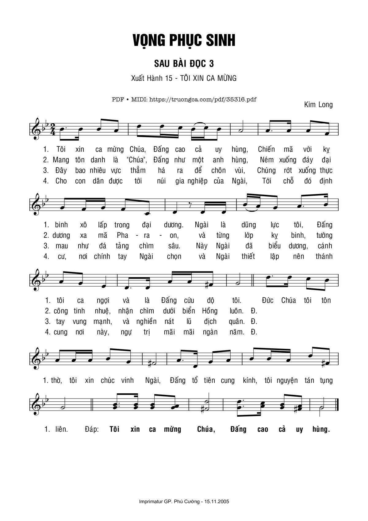 Kim Long Tôi xin ca mừng Chúa Đấng cao cả uy hùng [PDF] [Sheet] [Lyrics] [Mp4/Midi]