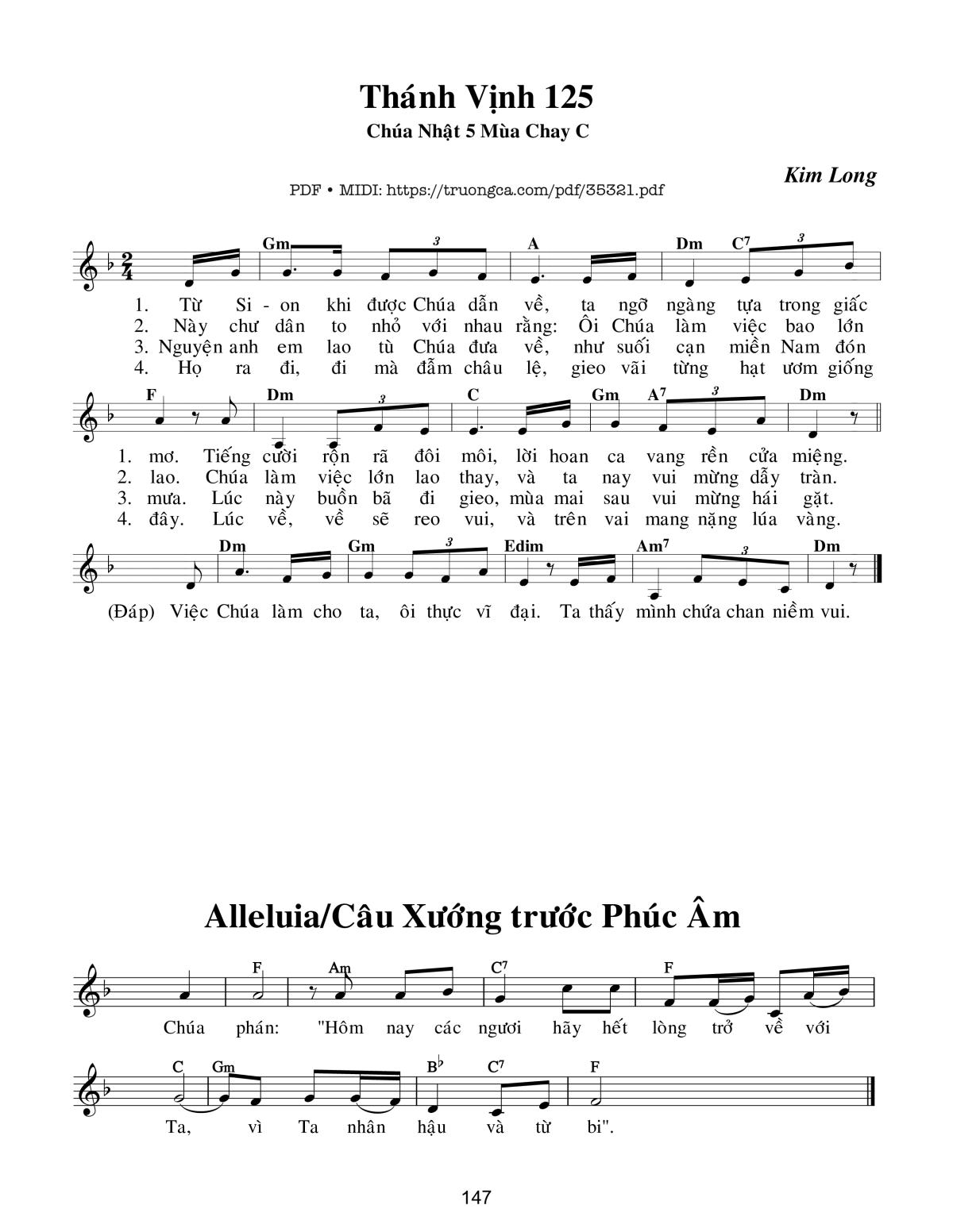Kim Long Alleluia Alleluia Alleluia Chúc tụng Chúa vì Ngài nhân từ [PDF] [Sheet] [Lyrics] [Mp4/Midi]