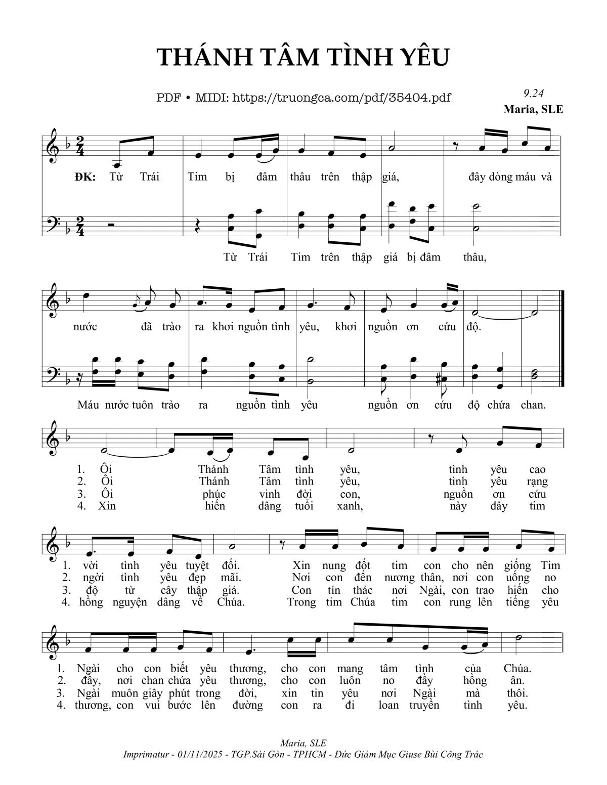 More similar sheets PDF Thánh Tâm Tình Yêu: