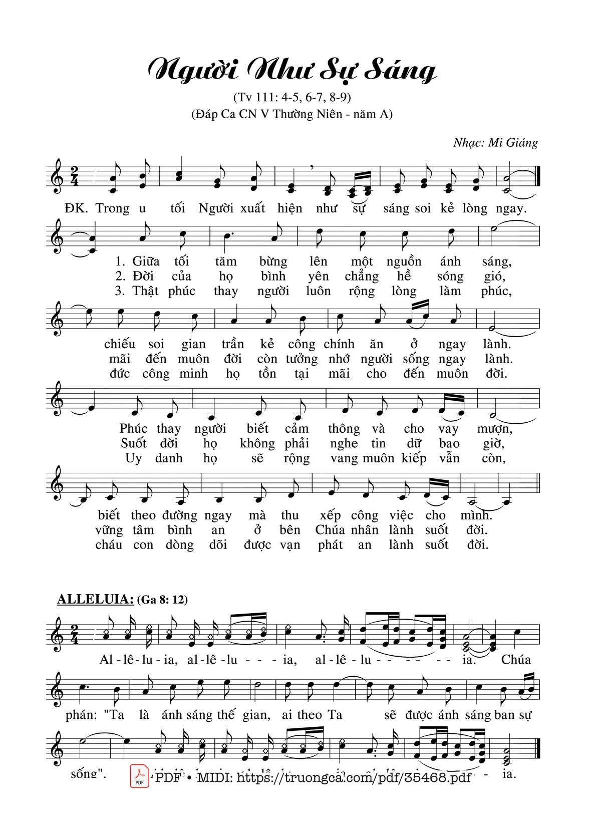 Mi Giáng Trong u tối Người xuất hiện như sự sáng soi kẻ lòng ngay [PDF] [Sheet] [Lyrics] [Mp4/Midi]