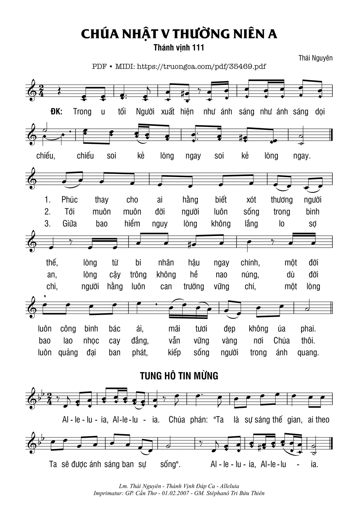 Thái Nguyên Trong u tối Người xuất hiện như ánh sáng như ánh sáng dọi chiếu [PDF] [Sheet] [Lyrics] [Mp4/Midi]