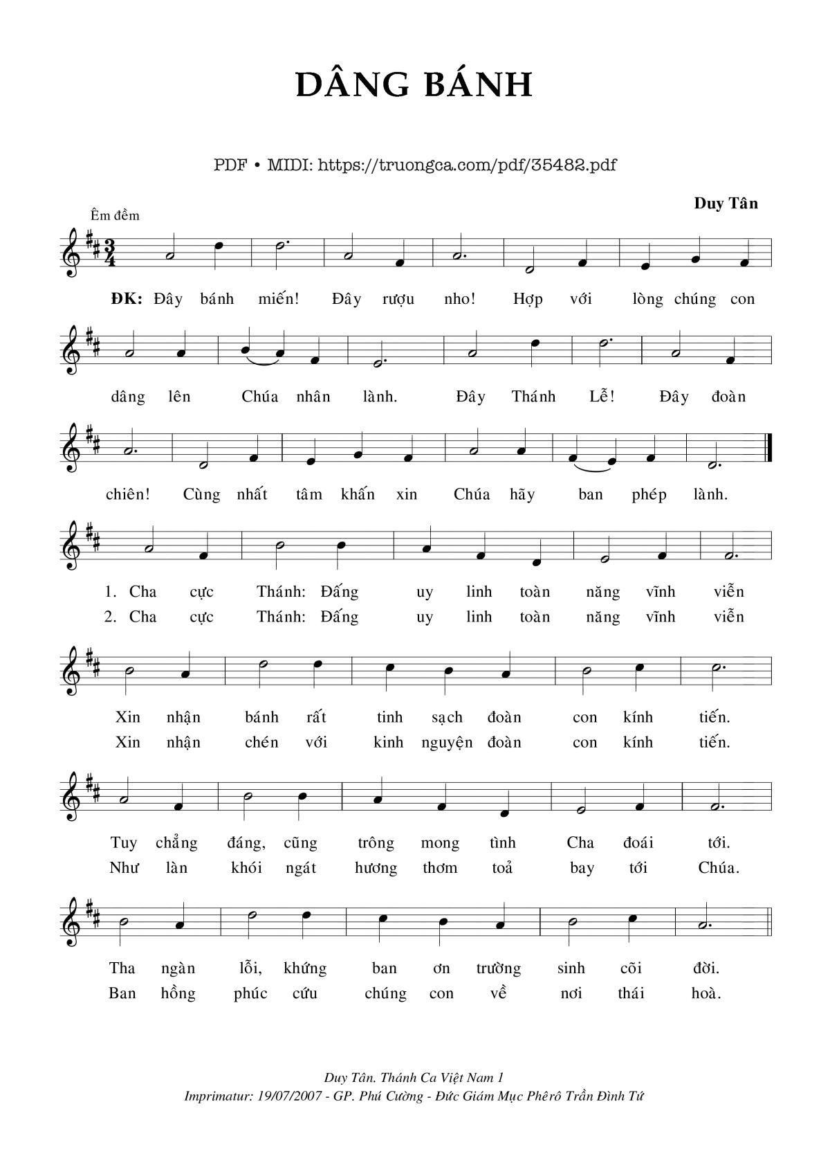 Duy Tân Đây bánh miến Đây rượu nho Hợp với lòng chúng con dâng lên Chúa nhân lành [PDF] [Sheet] [Lyrics] [Mp4/Midi]
