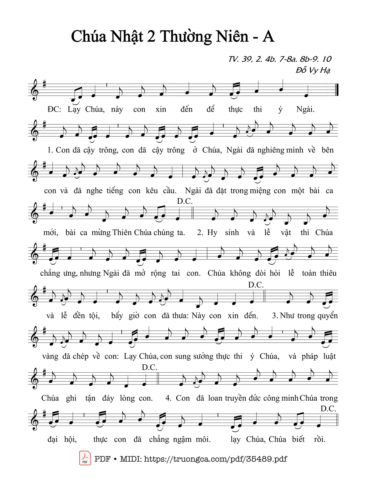 More similar sheets PDF Thánh Vịnh 39, Chúa Nhật 2A Thường Niên:
