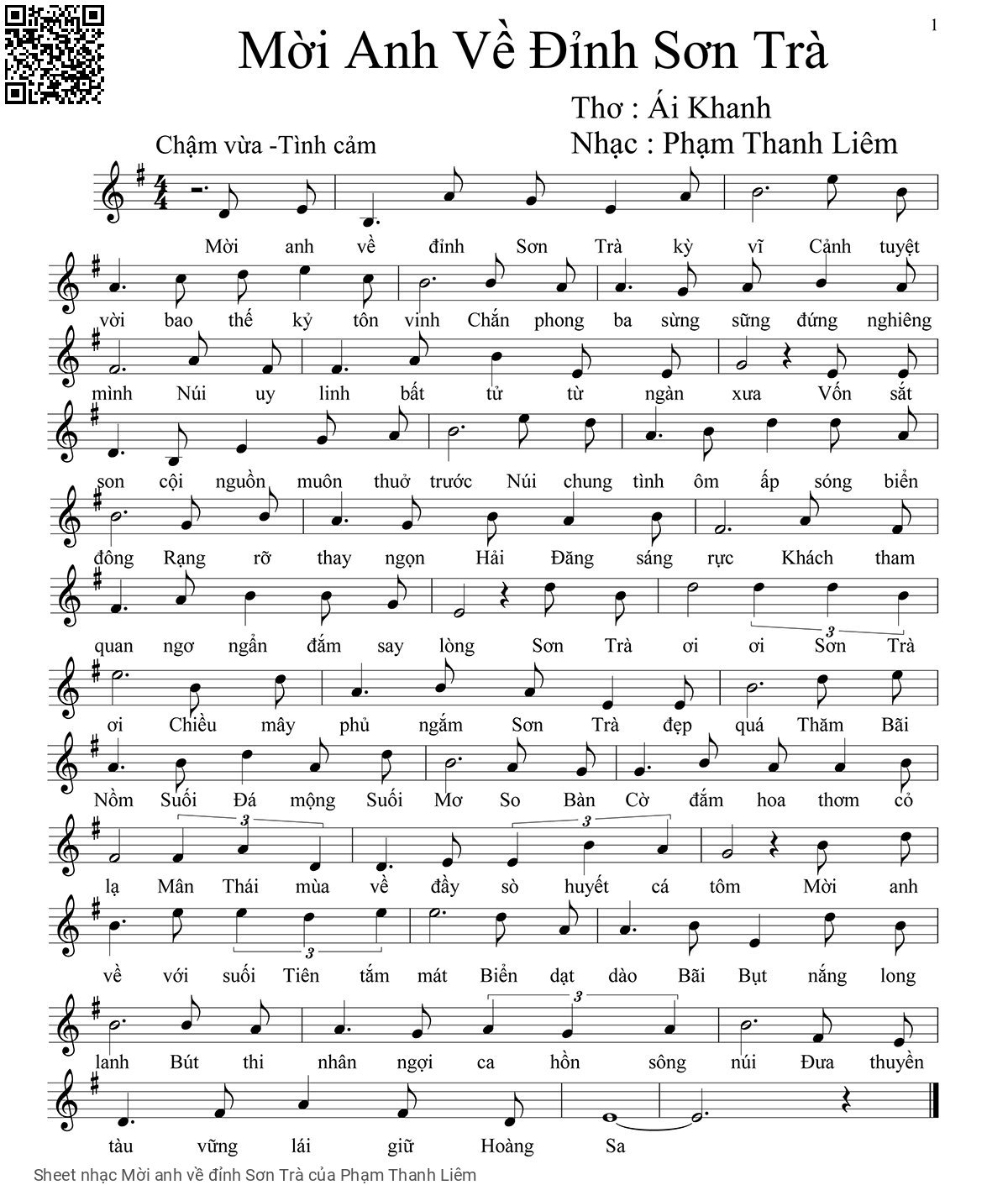 Phạm Thanh Liêm Mời anh về đỉnh Sơn Trà kỳ vĩ Cảnh tuyệt vời bao thế kỷ tôn vinh [PDF] [Sheet] [Lyrics] [Mp4/Midi]