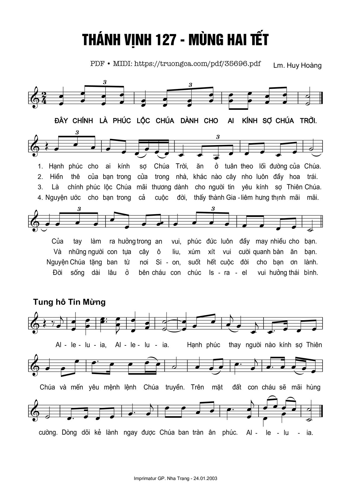 More similar sheets PDF Thánh Vịnh 127, Mùng 2 Tết: